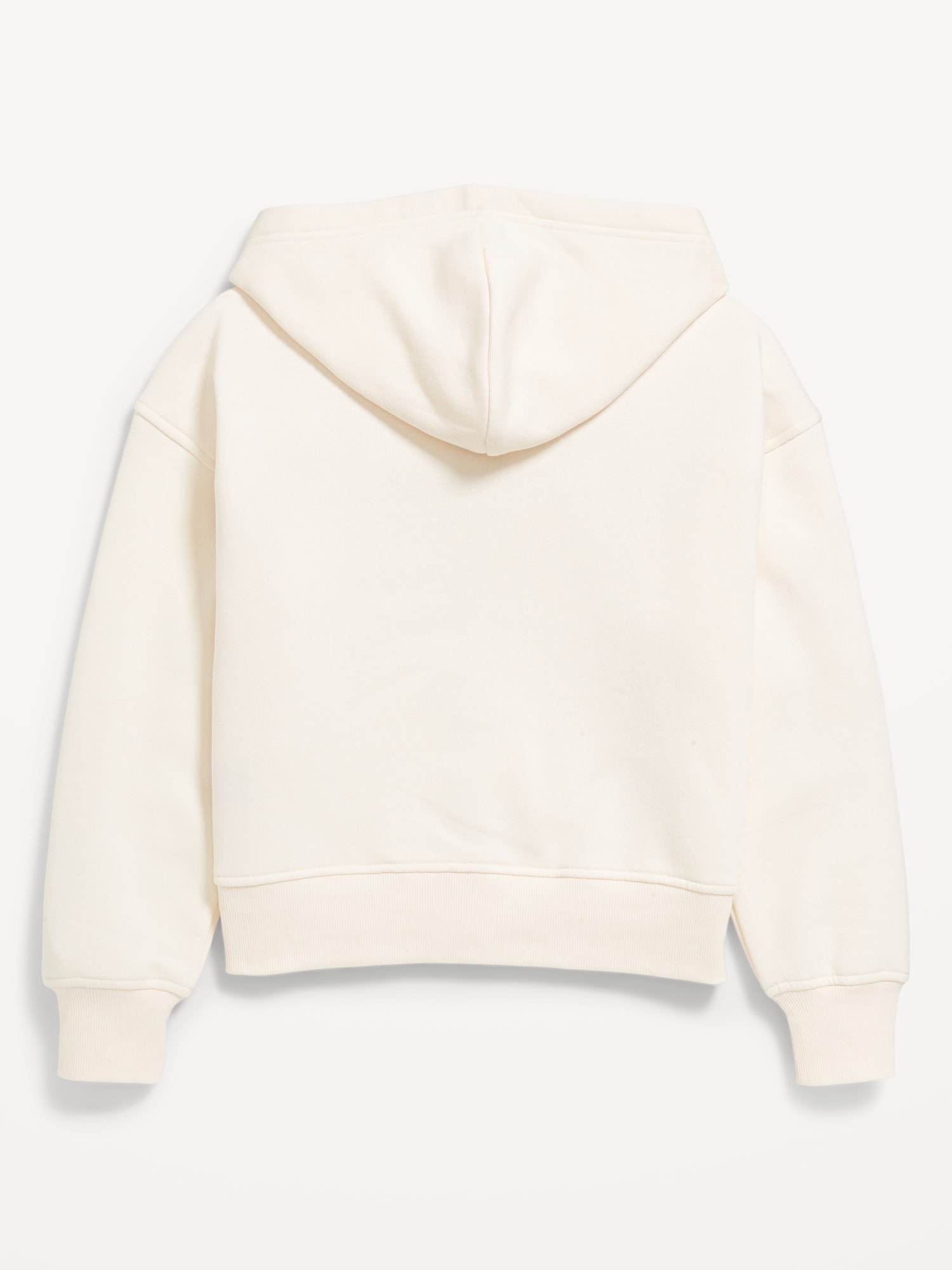 Favorite Fleece Printed Zip-Front Hoodie for Girls: built-in hood, long wide sleeves, drop shoulders, full length zipper, banded hem, all-over print or graphic at front, #787762