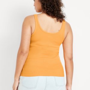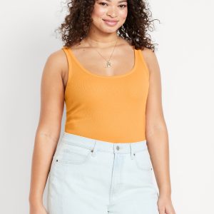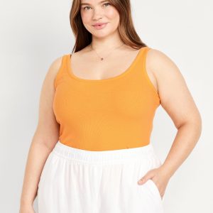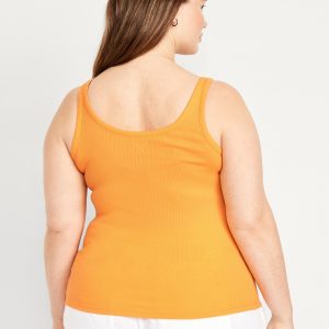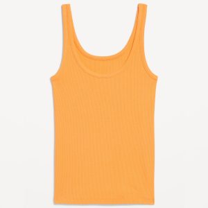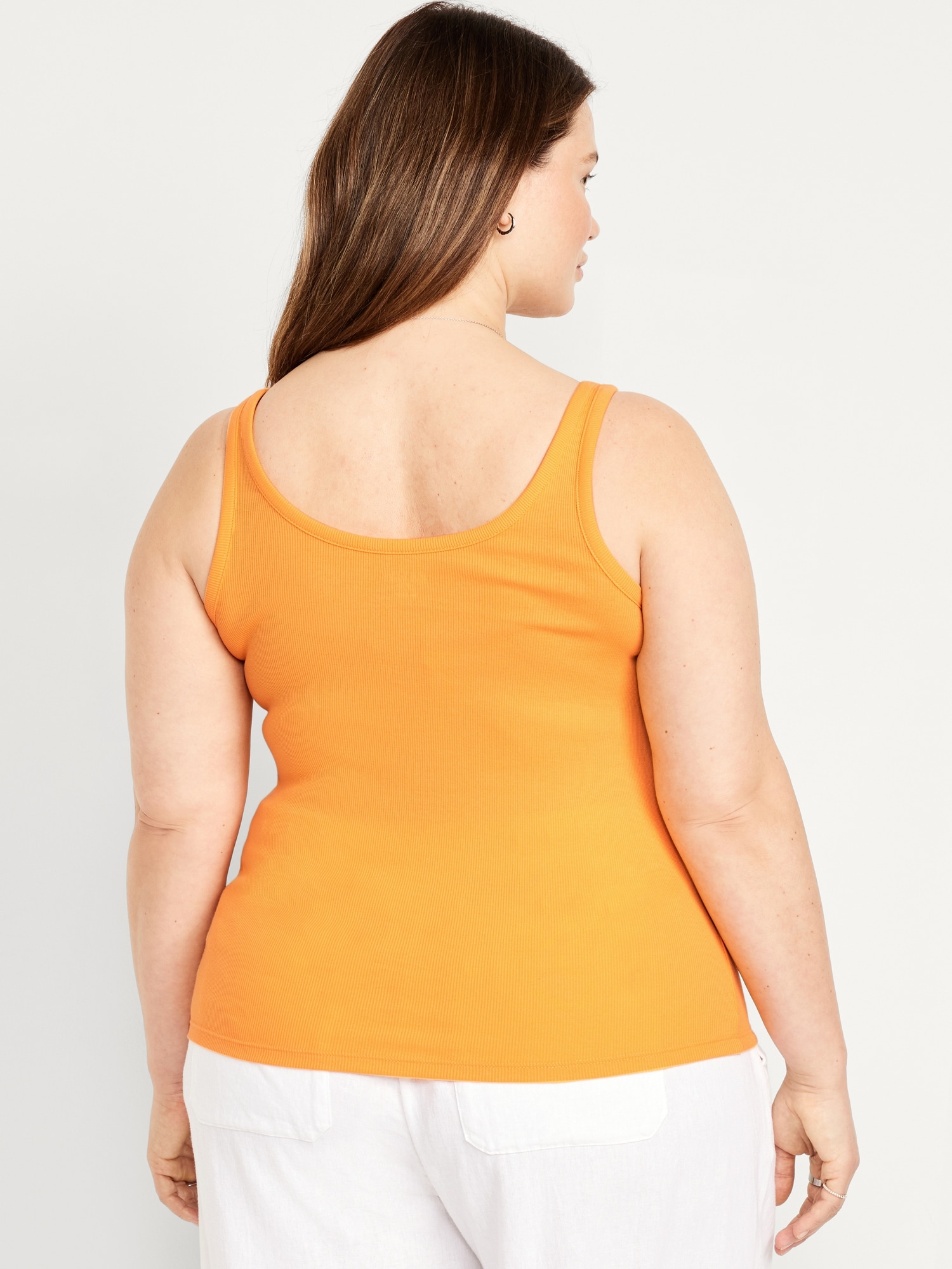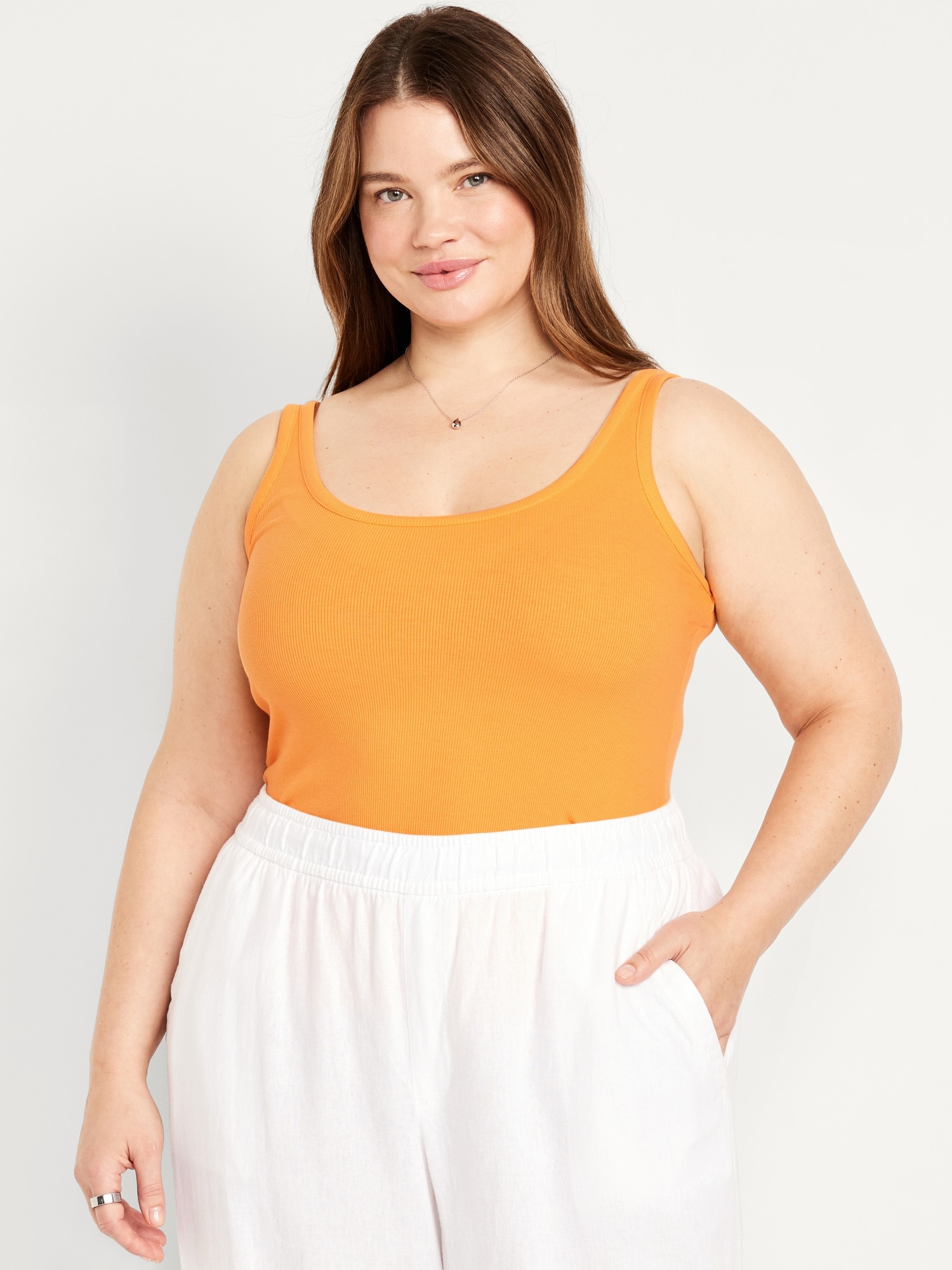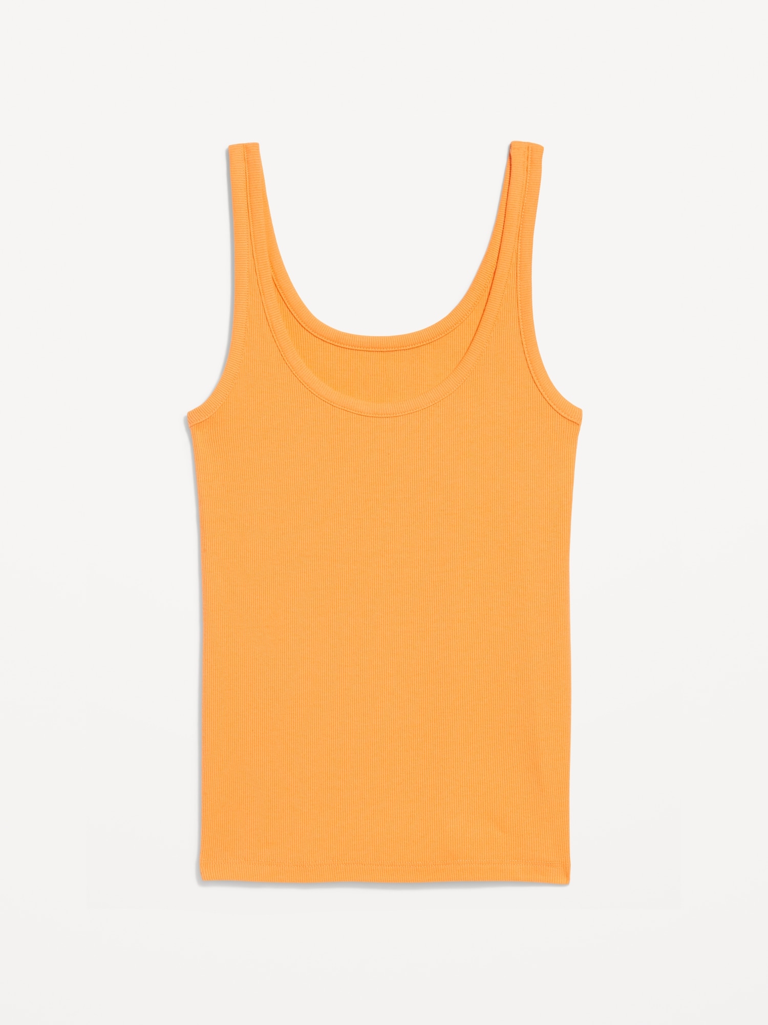 First-Layer Ribbed Scoop-Neck Tank Top: scoop neck, wide straps, #619927