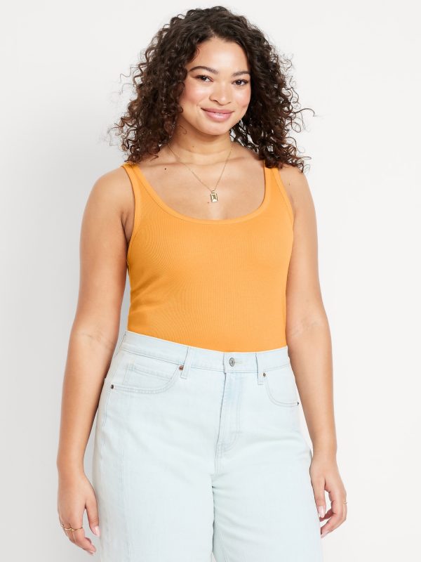 First-Layer Ribbed Scoop-Neck Tank Top: scoop neck, wide straps, #619927