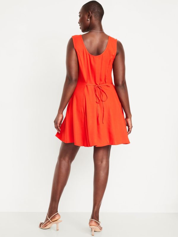 Fit & Flare Crepe Button-Front Mini Dress: scoop neck, wide straps, tie-back waist, full button front, princess seams, #798239