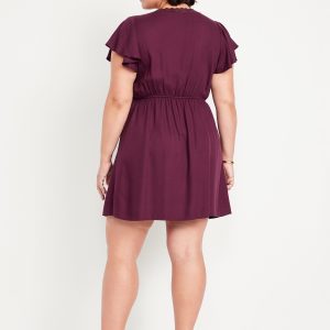 Fit & Flare Crepe Lace-Trim Mini Dress: lace-trim v-neck and bodice, short flutter sleeves, elasticized back waist, prints vary by color, #798245