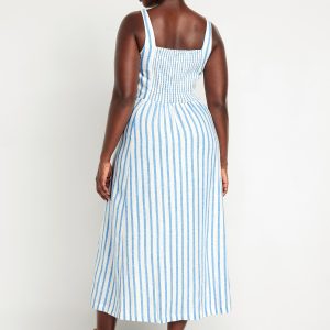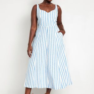 Fit & Flare Sleeveless Linen-Blend Midi Dress