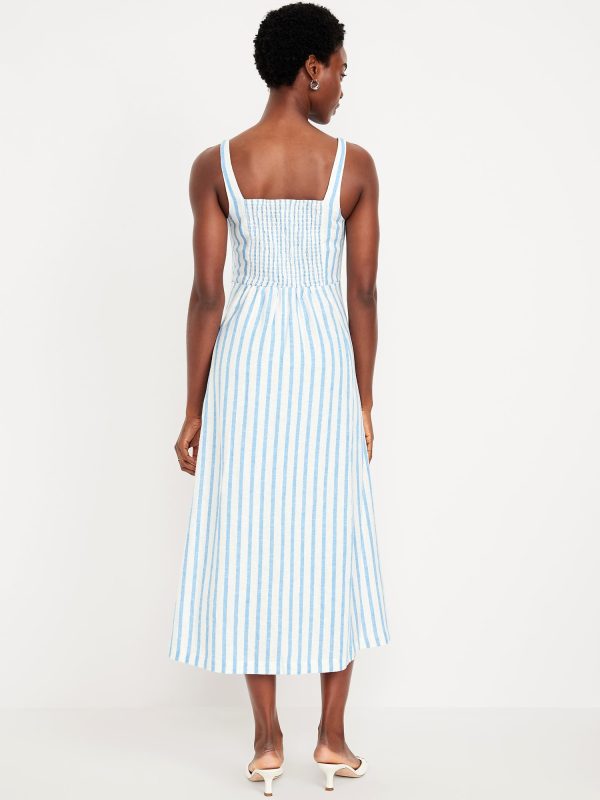Fit & Flare Sleeveless Linen-Blend Midi Dress