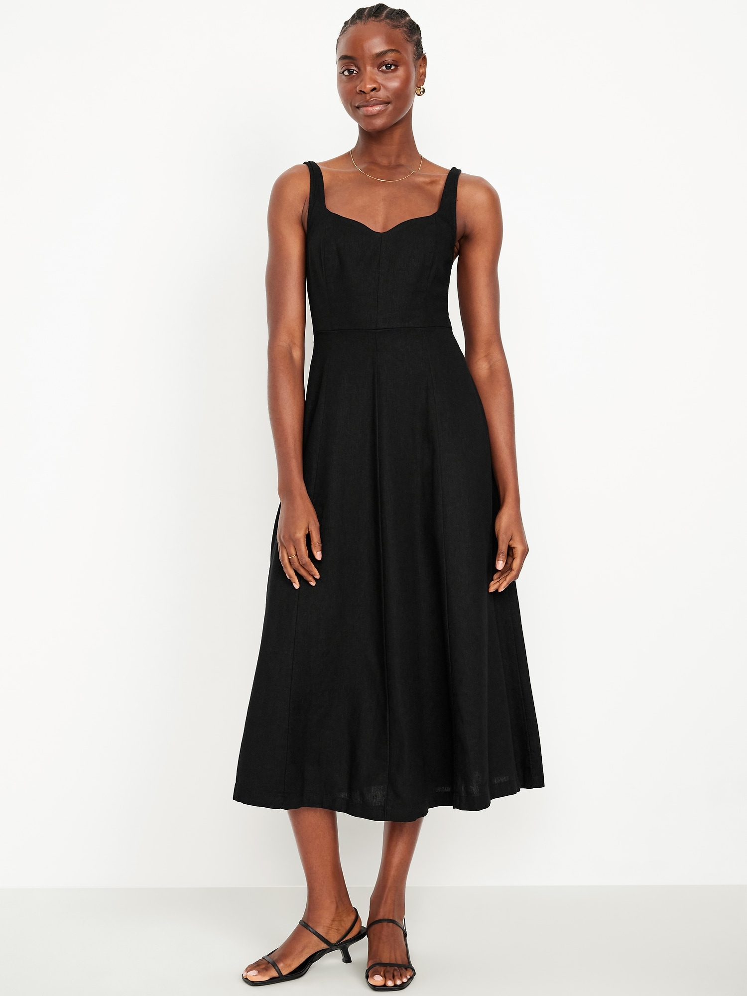 Fit & Flare Sleeveless Linen-Blend Midi Dress