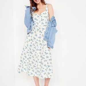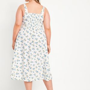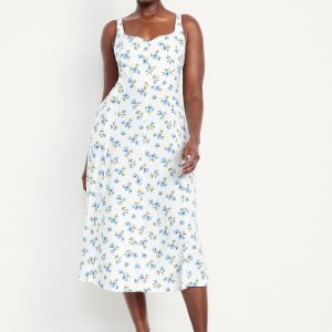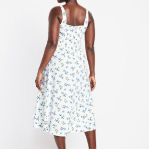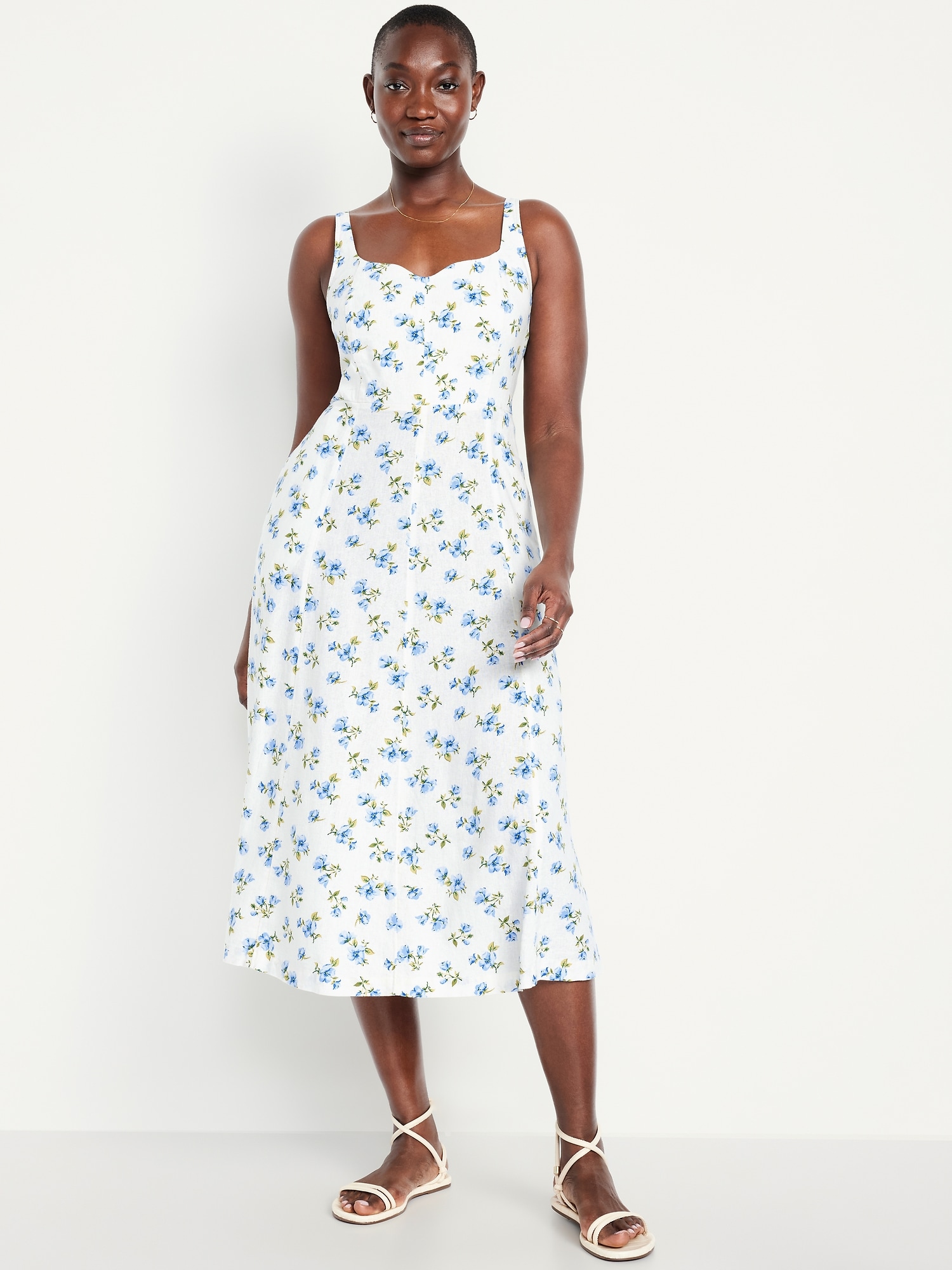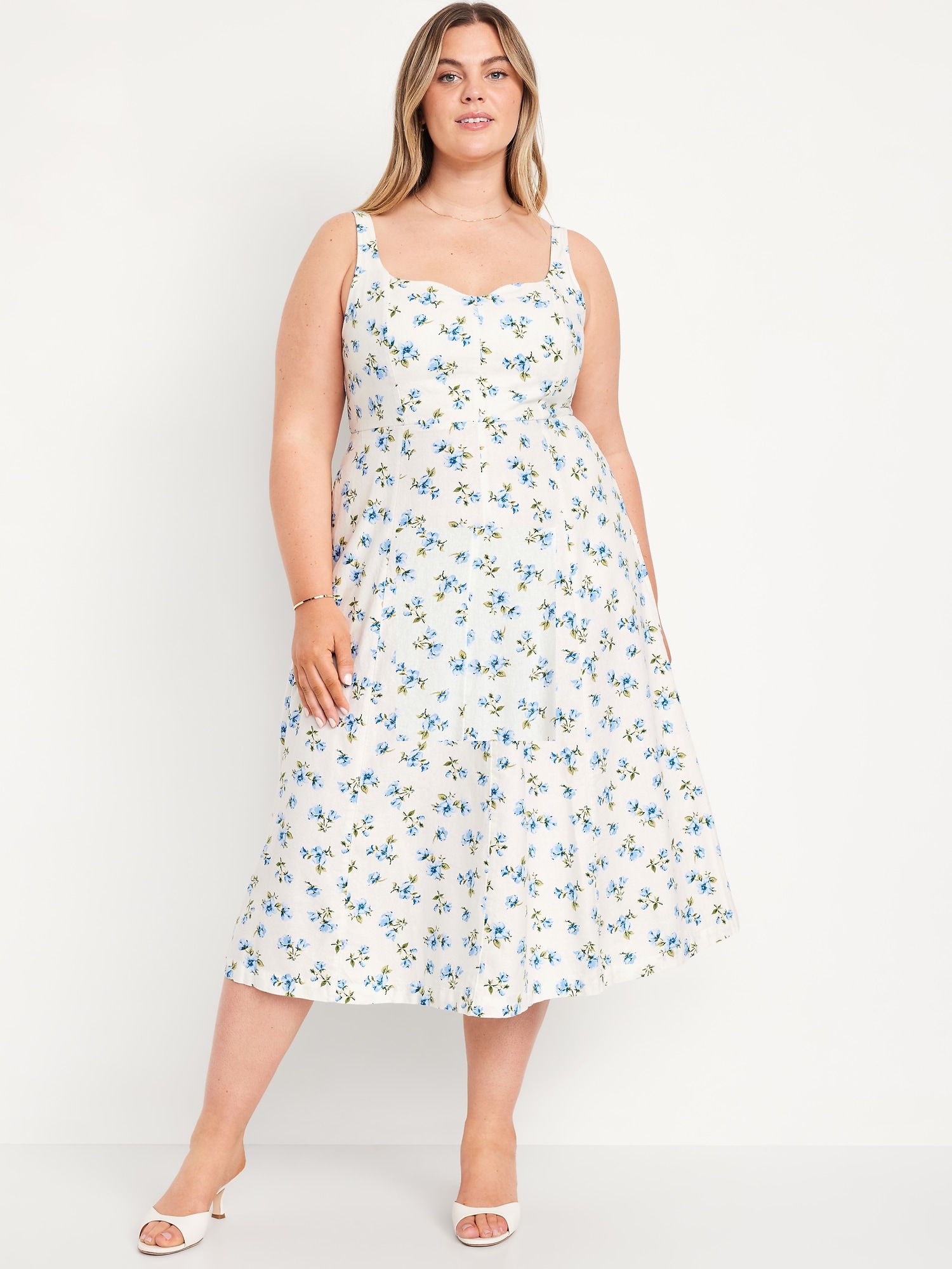 Fit & Flare Sleeveless Linen-Blend Midi Dress