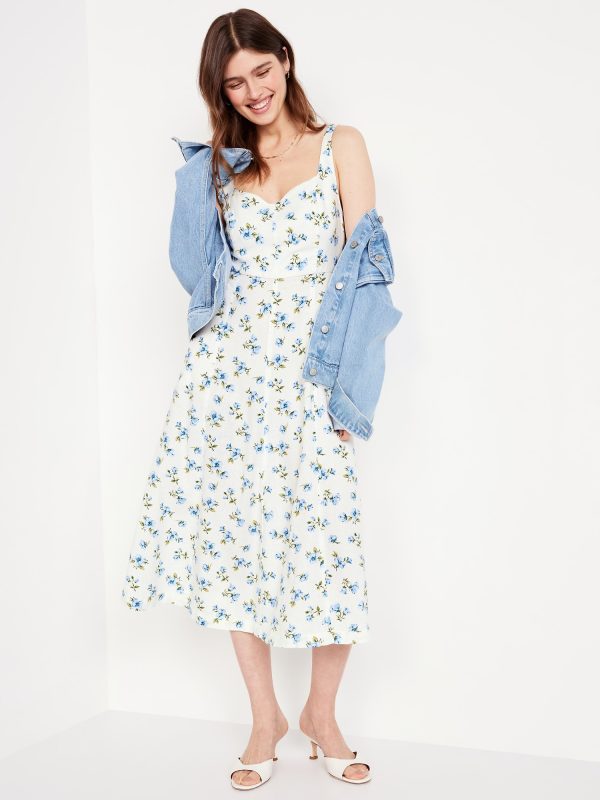 Fit & Flare Sleeveless Linen-Blend Midi Dress