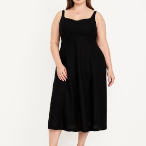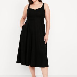 Fit & Flare Sleeveless Linen-Blend Midi Dress
