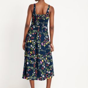 Fit & Flare Sleeveless Linen-Blend Midi Dress: sweetheart neckline, wide straps, on-seam pockets, smocked back, all-over fruit print, a dress that feels like a vacation, #766920
