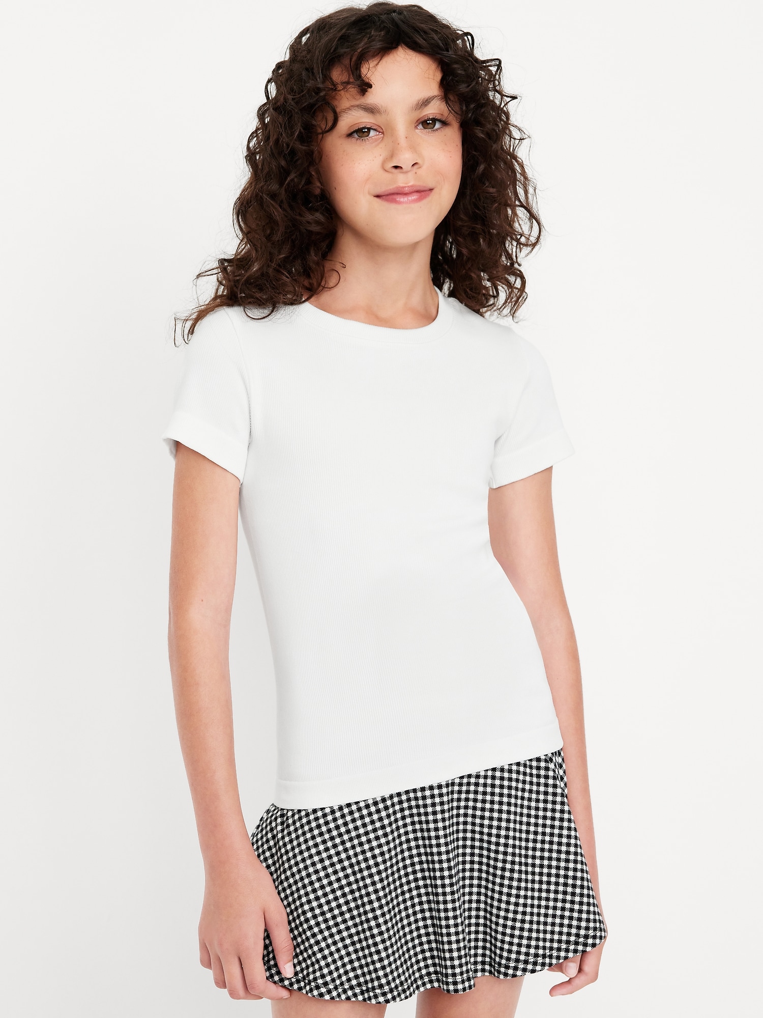 Fitted Seamless Ribbed Performance Top for Girls: crew neck, short sleeves, #802735