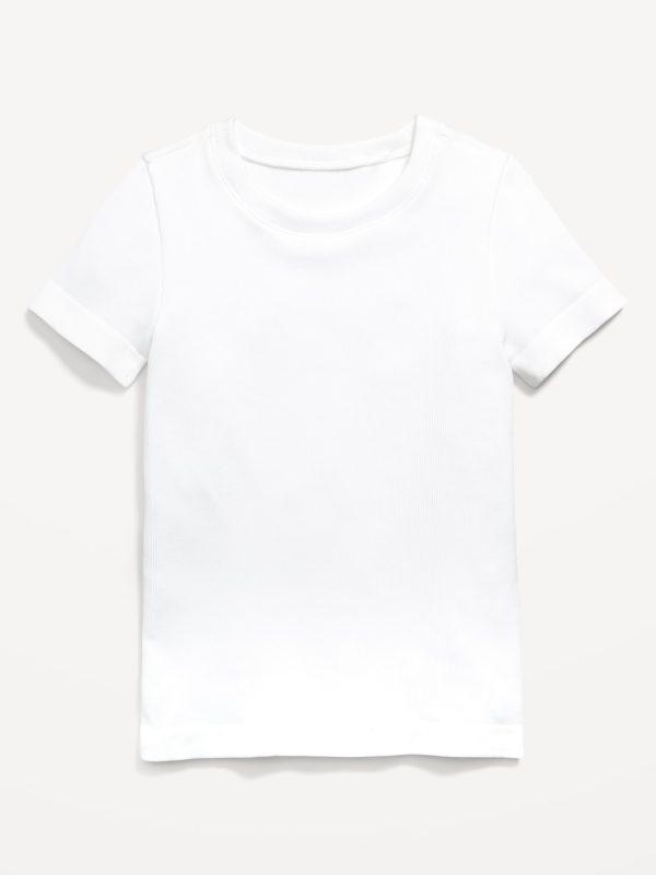 Fitted Seamless Ribbed Performance Top for Girls: crew neck, short sleeves, #802735