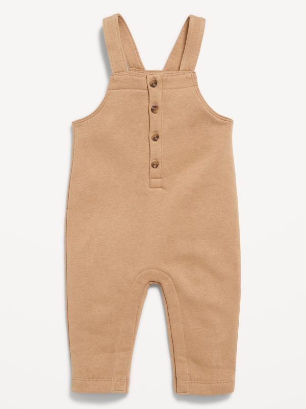 Fleece Button-Front Overalls for Baby: square neckline, shoulder straps, buttoned placket at front, hidden snaps along inseam, #802637