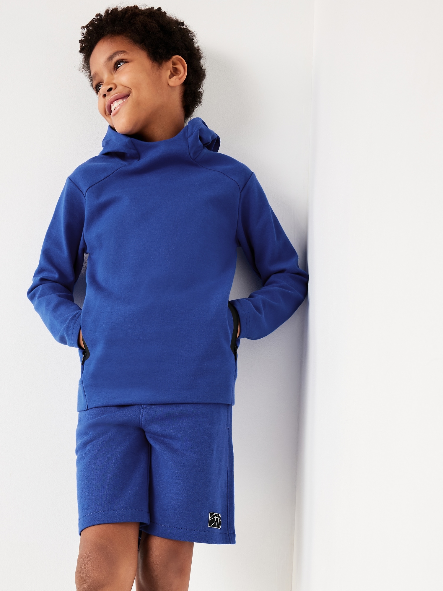 Fleece Jogger Shorts for Boys (At Knee): elasticized waistband, interior drawstring, on-seam welt pockets, #685948