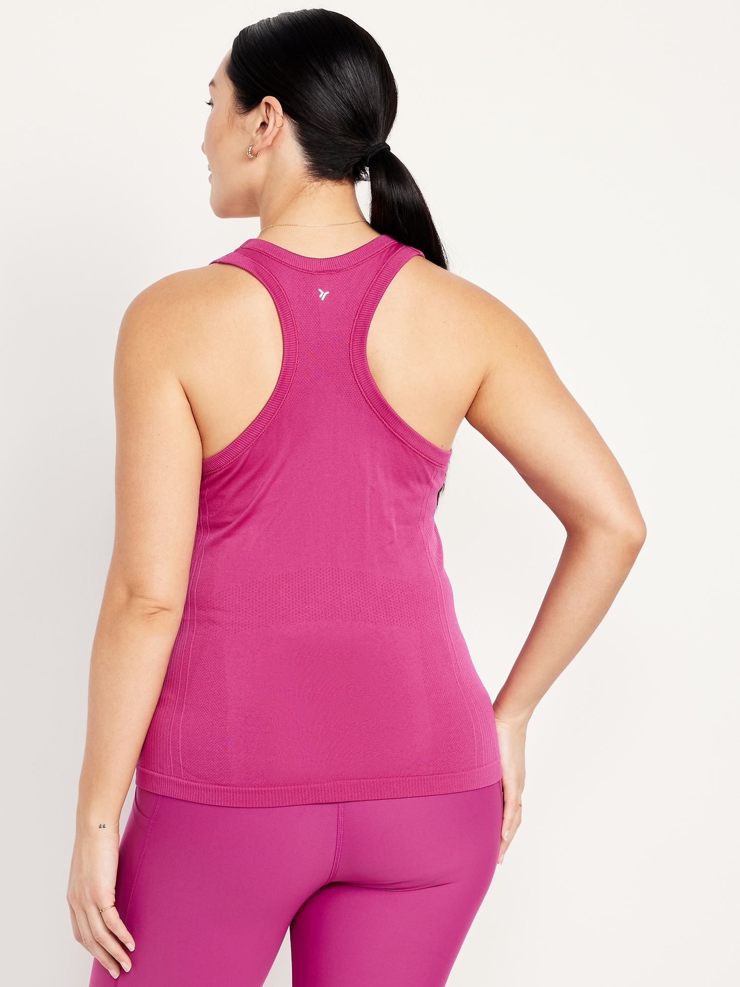 Fluid Seamless Fitted Tank Top: Featuring Fluid Seamless, for breathable, barely-there feels.rib-knit panels at sides and back, scoop neck, racerback, go-dry wicks moisture, #848693