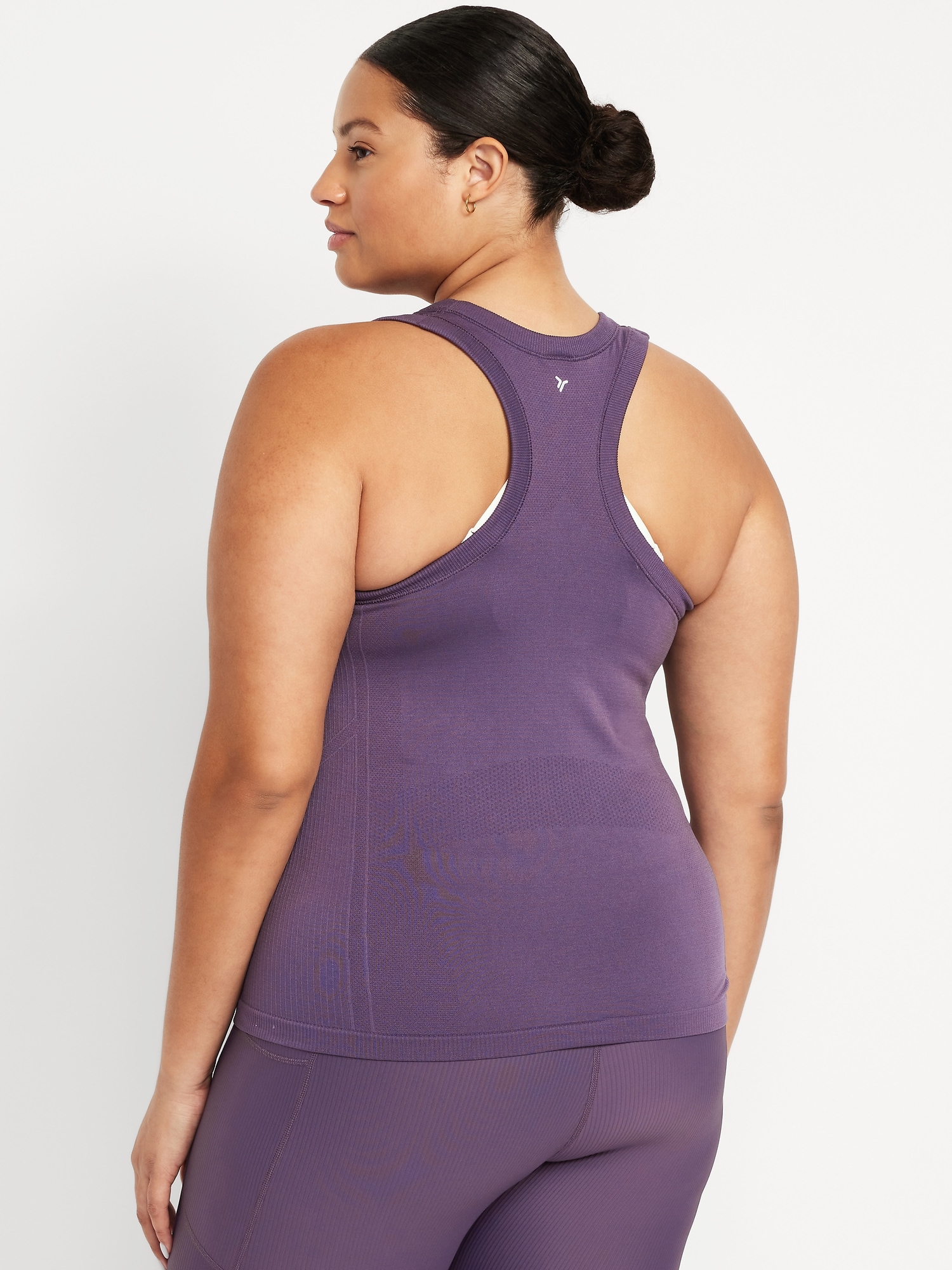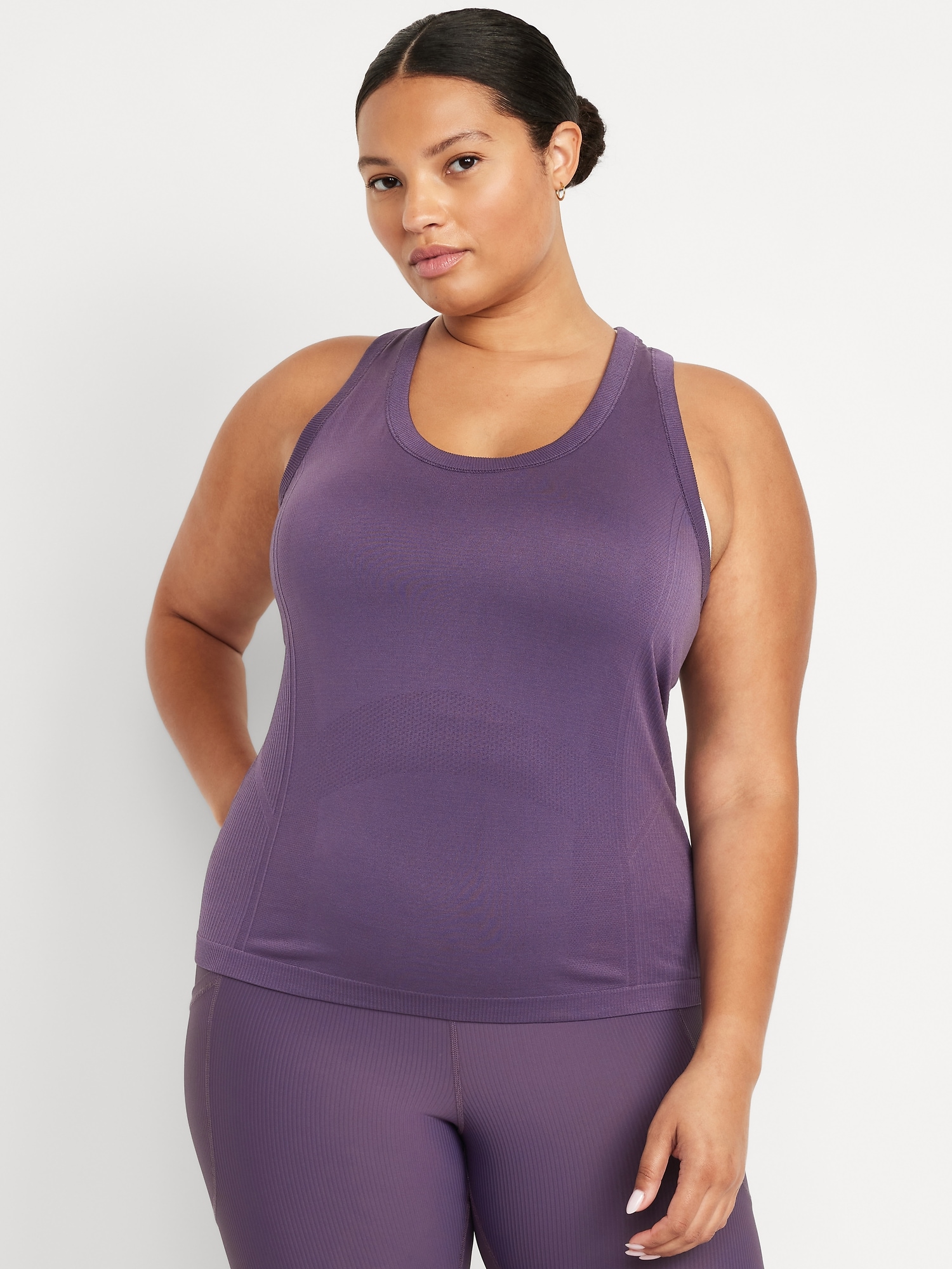 Fluid Seamless Fitted Tank Top: Featuring Fluid Seamless, for breathable, barely-there feels.rib-knit panels at sides and back, scoop neck, racerback, go-dry wicks moisture, #848693