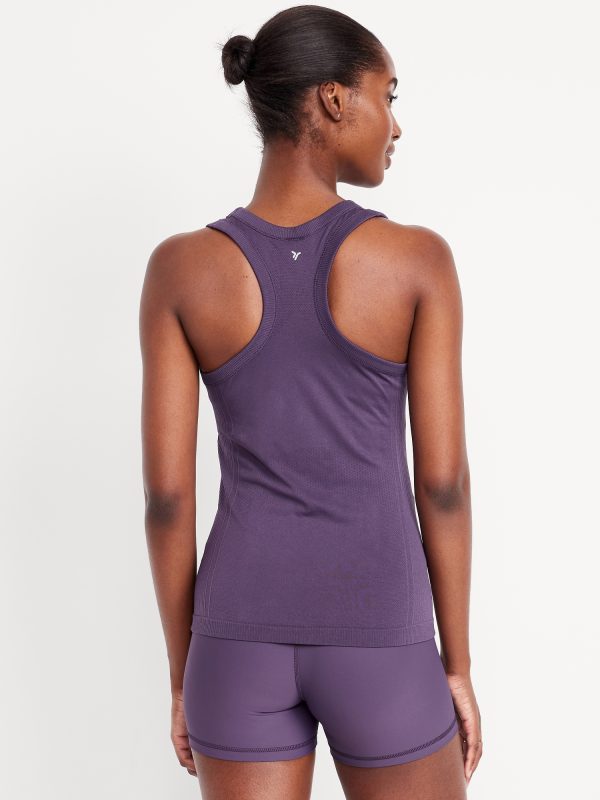 Fluid Seamless Fitted Tank Top: Featuring Fluid Seamless, for breathable, barely-there feels.rib-knit panels at sides and back, scoop neck, racerback, go-dry wicks moisture, #848693