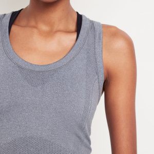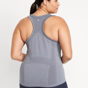 Fluid Seamless Fitted Tank Top: Featuring Fluid Seamless, for breathable, barely-there feels.rib-knit panels at sides and back, scoop neck, racerback, go-dry wicks moisture, #848693