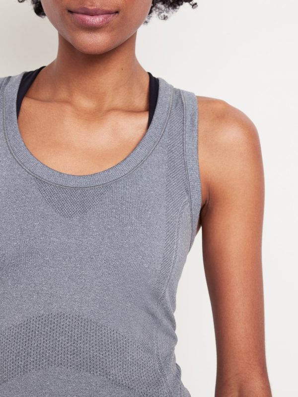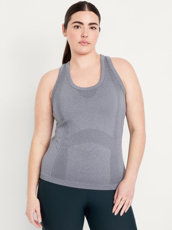 Fluid Seamless Fitted Tank Top: Featuring Fluid Seamless, for breathable, barely-there feels.rib-knit panels at sides and back, scoop neck, racerback, go-dry wicks moisture, #848693