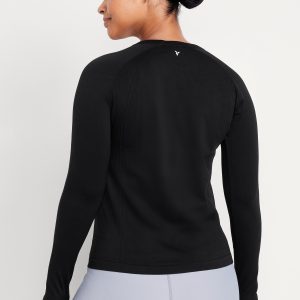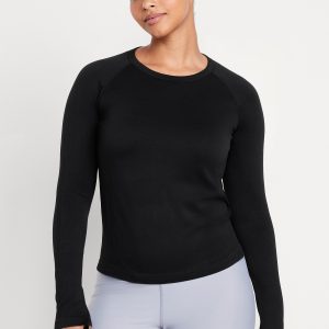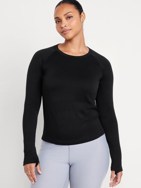 Fluid Seamless Fitted Top: Featuring Fluid, for breathable, barely-there feels.crew neck, raglan sleeves, thumbhole cuffs, go-dry wicks moisture, #809350