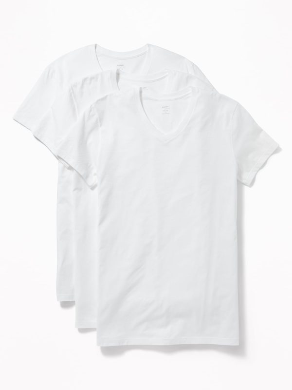 Go-Dry V-Neck T-Shirt 3-Pack: Set includes three tees., Rib-knit V-neck., Short sleeves., Go-Dry moisture-wicking technology keeps you dry & comfortable., Soft-washed, lightweight jersey for the ultimate in softness. We put it through the wringer so you don’t have to., White/Black/Heather Gray only: 100% cotton (black & white colors only); 60% cotton, 40% polyester (heather gray color only)., Tag-free label and pieced trim inside neck for added comfort & durability., #209759