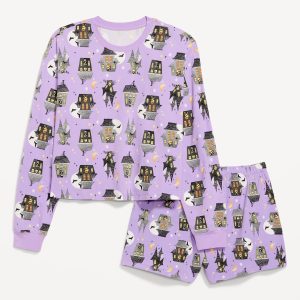 Halloween Pajama Short Set: set includes sleep top and coordinating shorts, crew neck, long drop-shoulder sleeves, elastic-waist sleep shorts, licensed graphic, © Disney, #804829