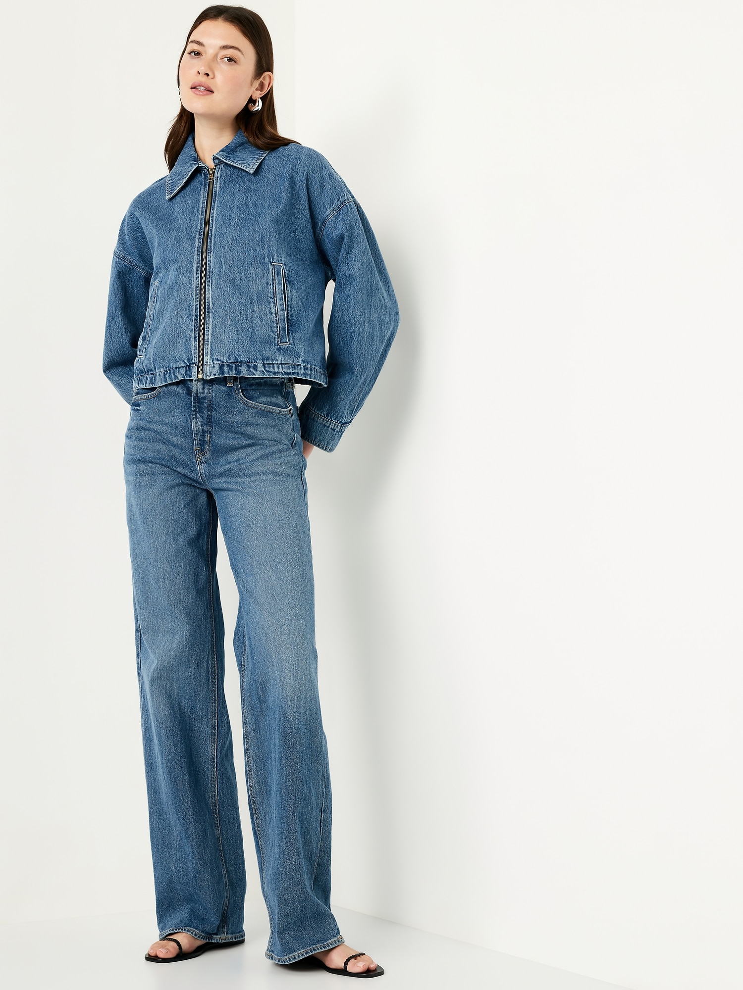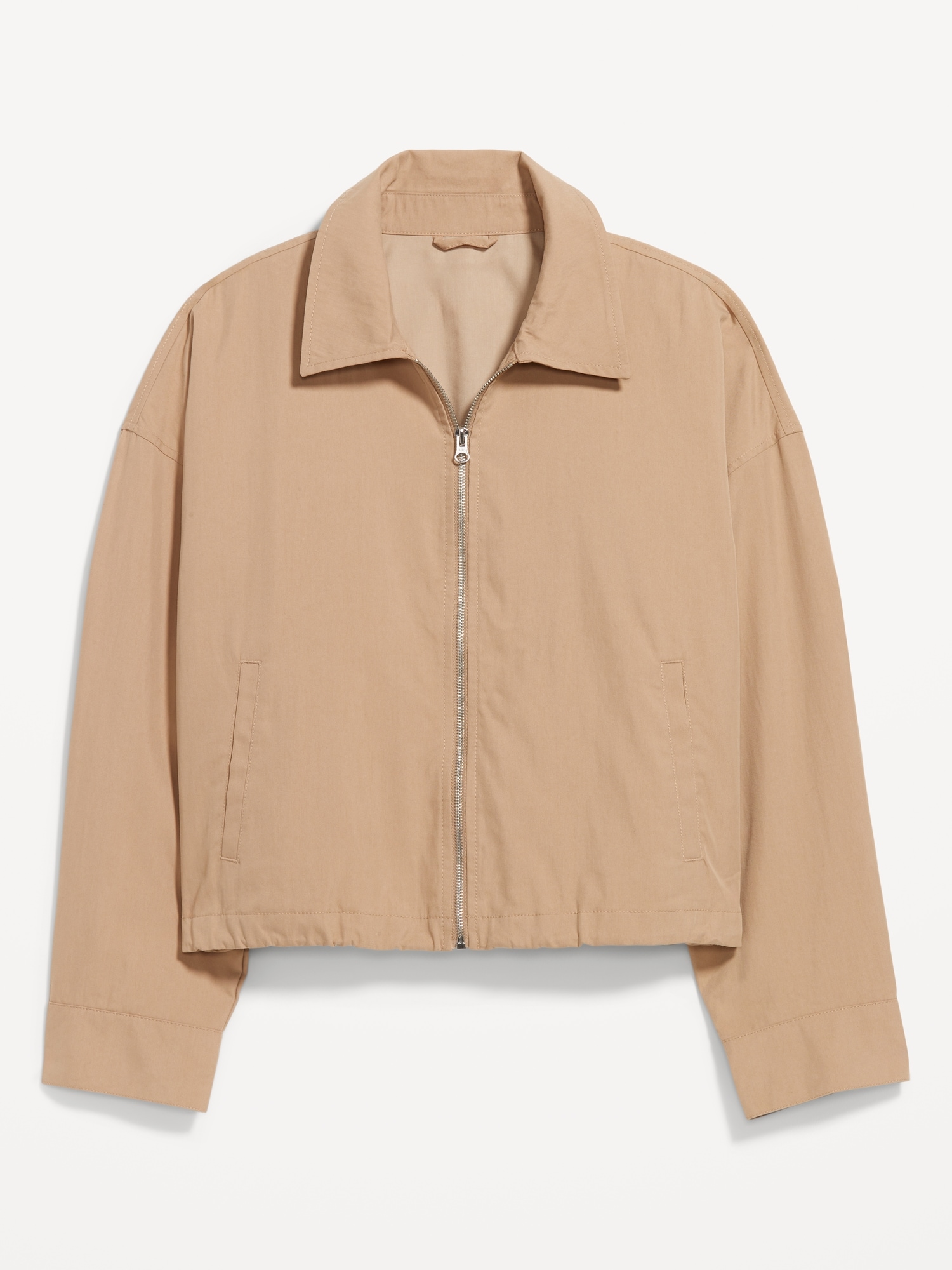 Harrington Zip Jacket: spread collar, drop-shoulder sleeves with snap cuffs, full-zip front, welt pockets, cinched hem, #790492