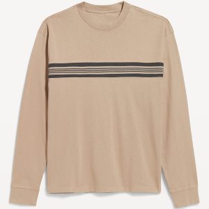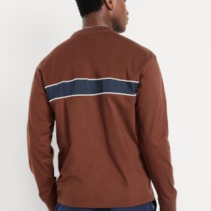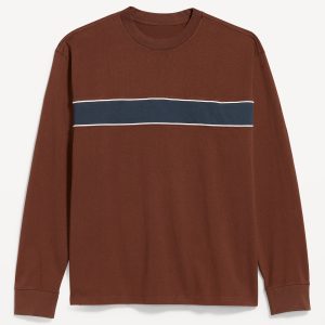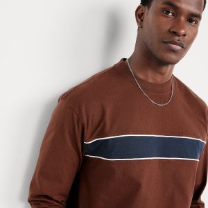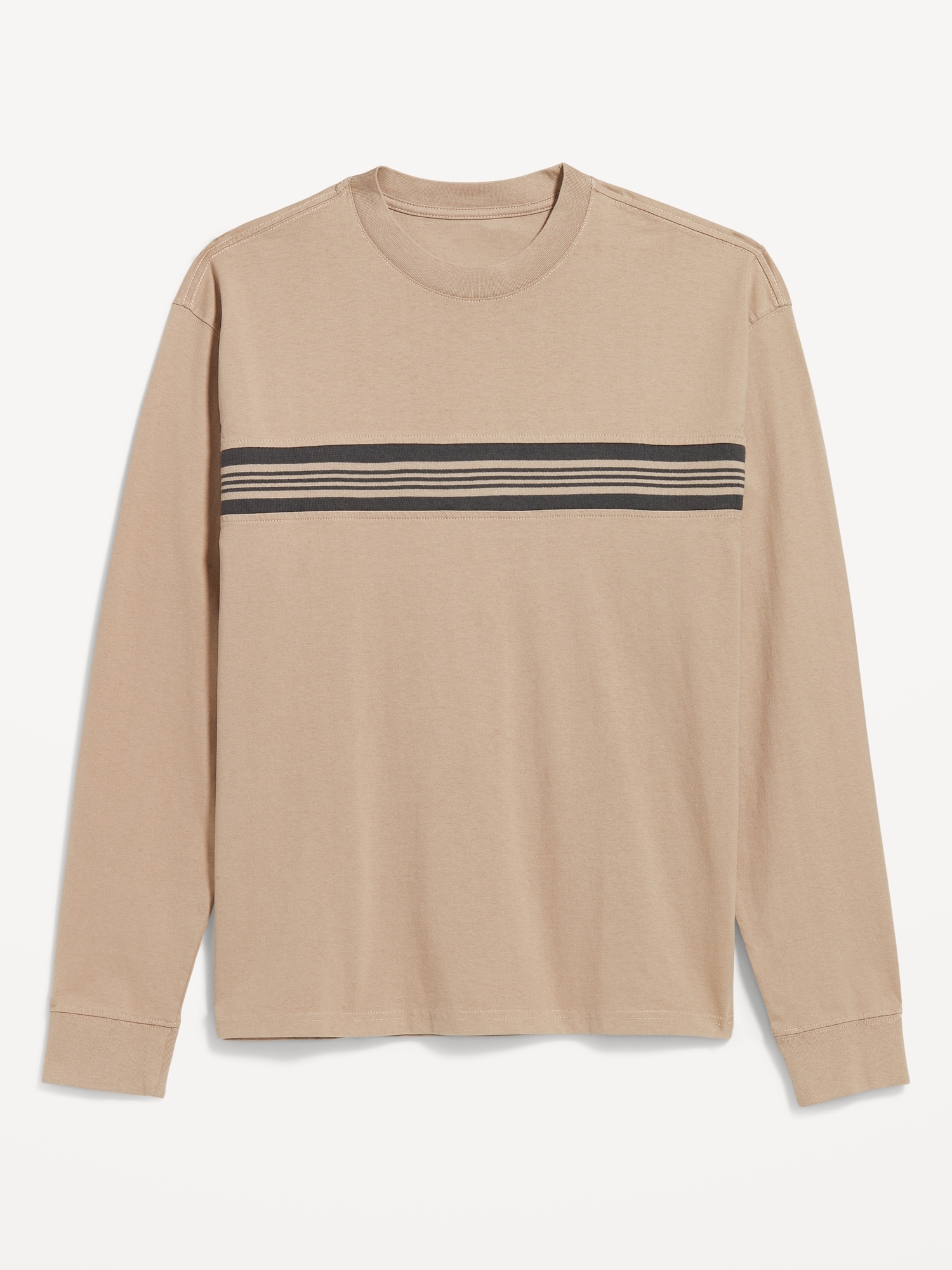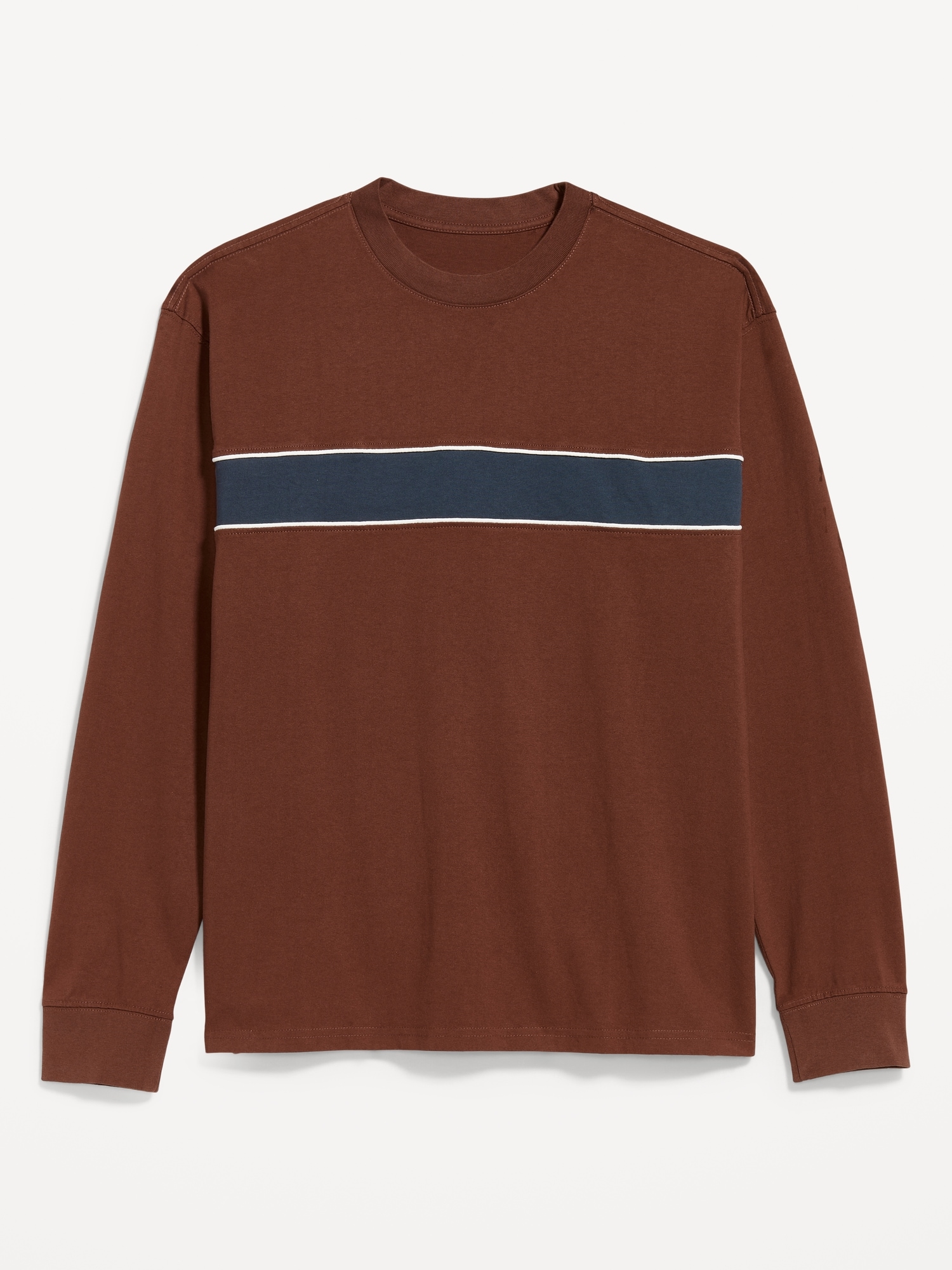 Heavyweight Chest-Stripe T-Shirt: rib-knit crew neck, long sleeves with rib-knit cuffs, contrasting chest stripes, #801794