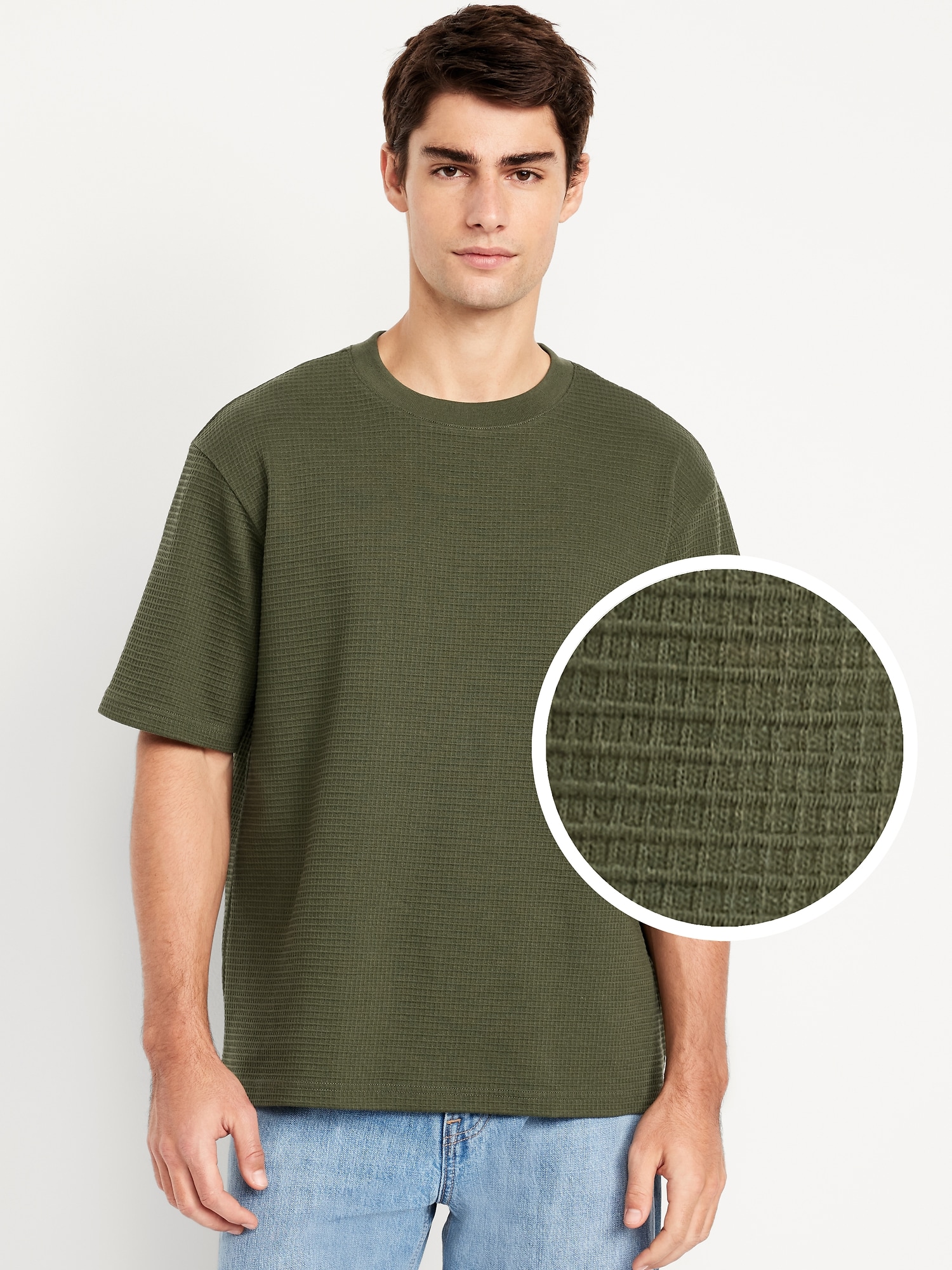 Heavyweight Crew-Neck Waffle T-Shirt: rib-knit crew neck, short sleeves, #764244