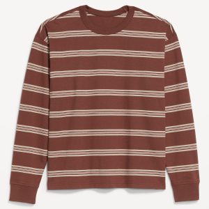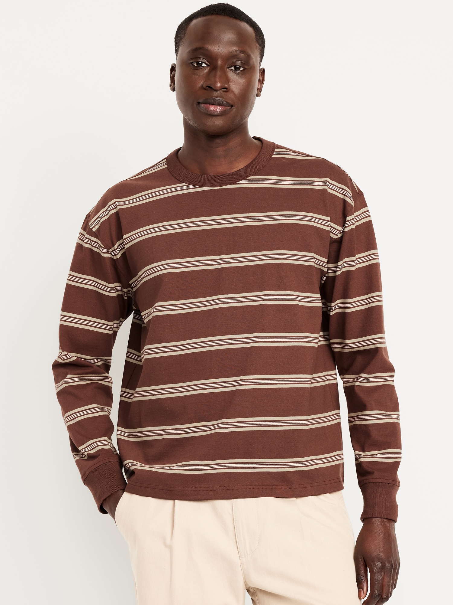 Heavyweight Cropped T-Shirt: crew neck, long sleeves, select colors have striped print, #801788