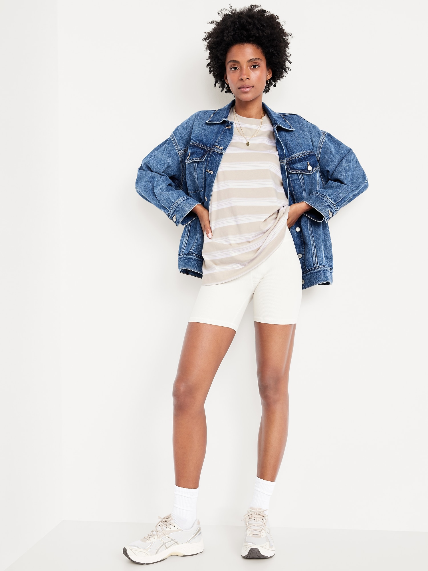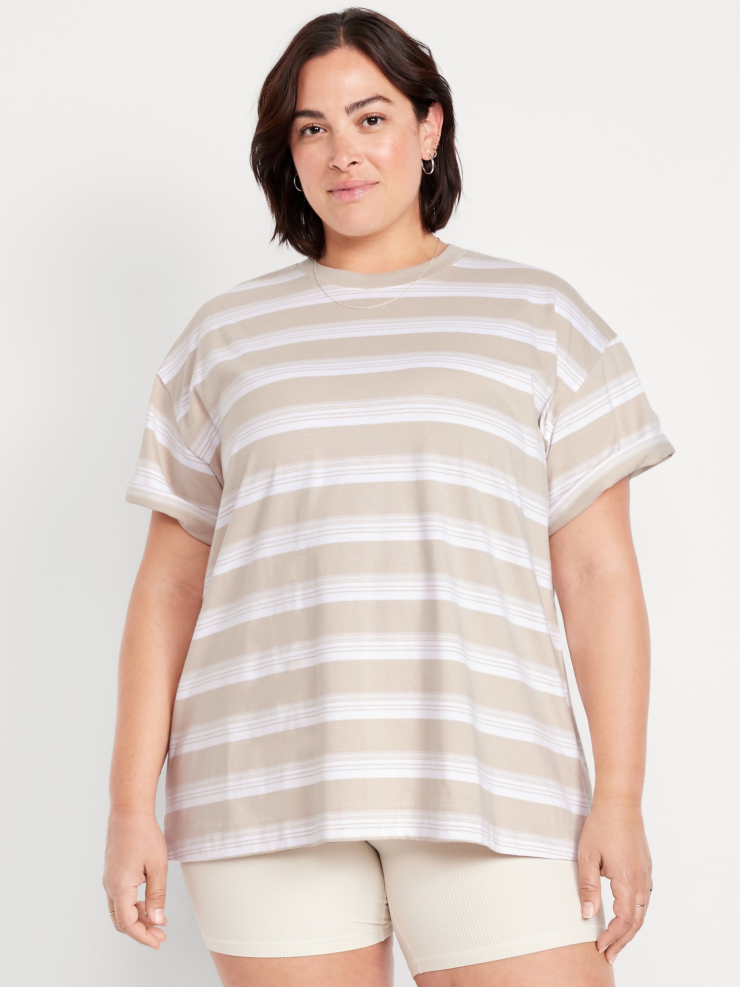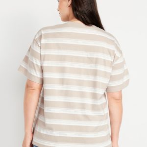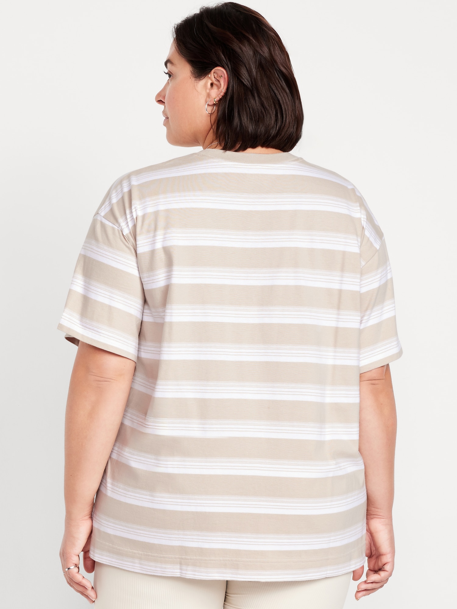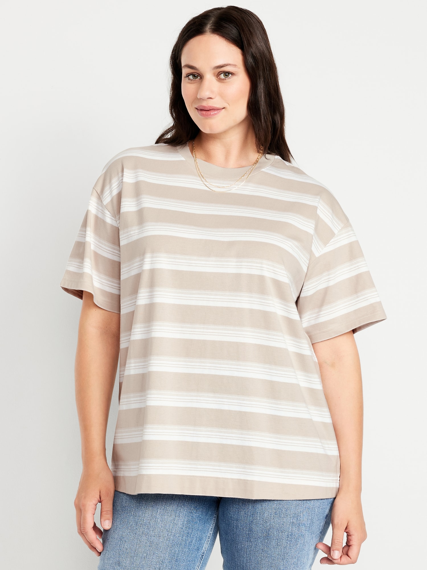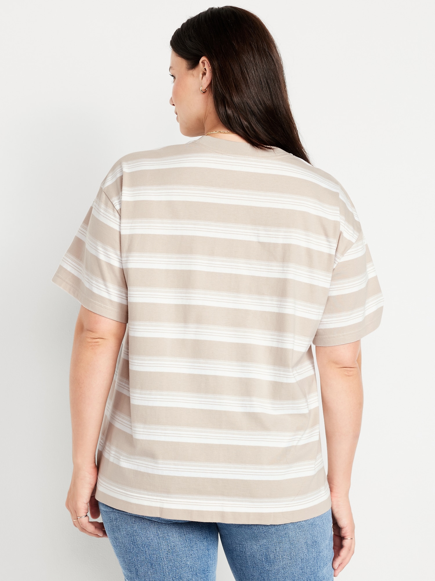 Heavyweight Oversized Striped T-Shirt: crew neck, short sleeves, striped print, #844565