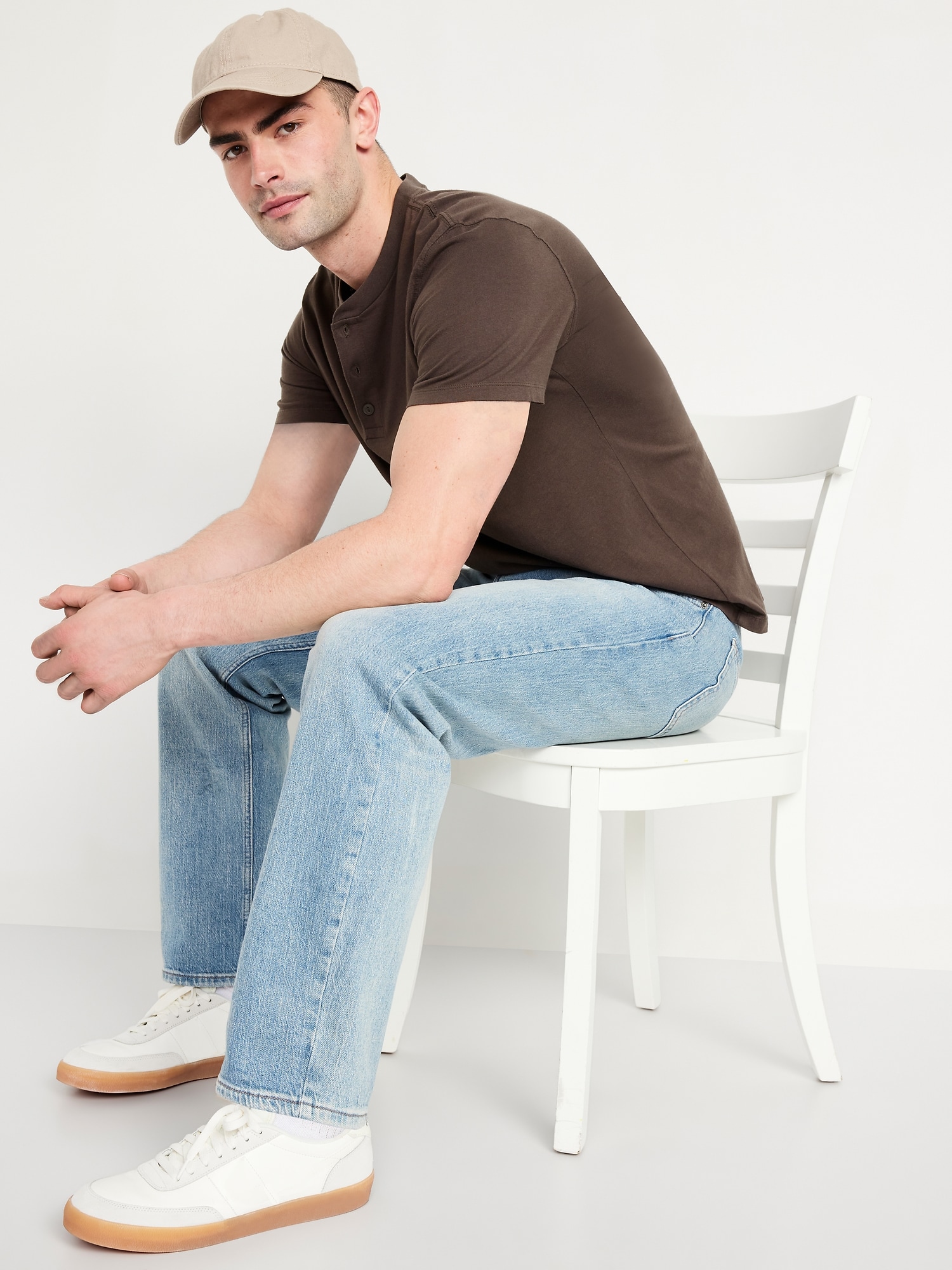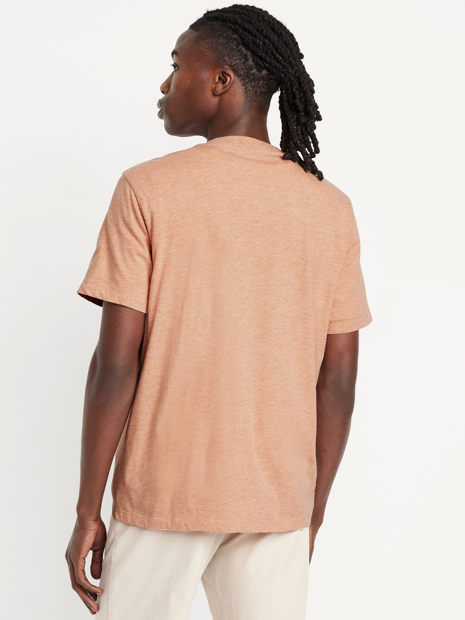 Henley T-Shirt: rib-knit crew neck, short sleeves, three-button henley placket, #687868