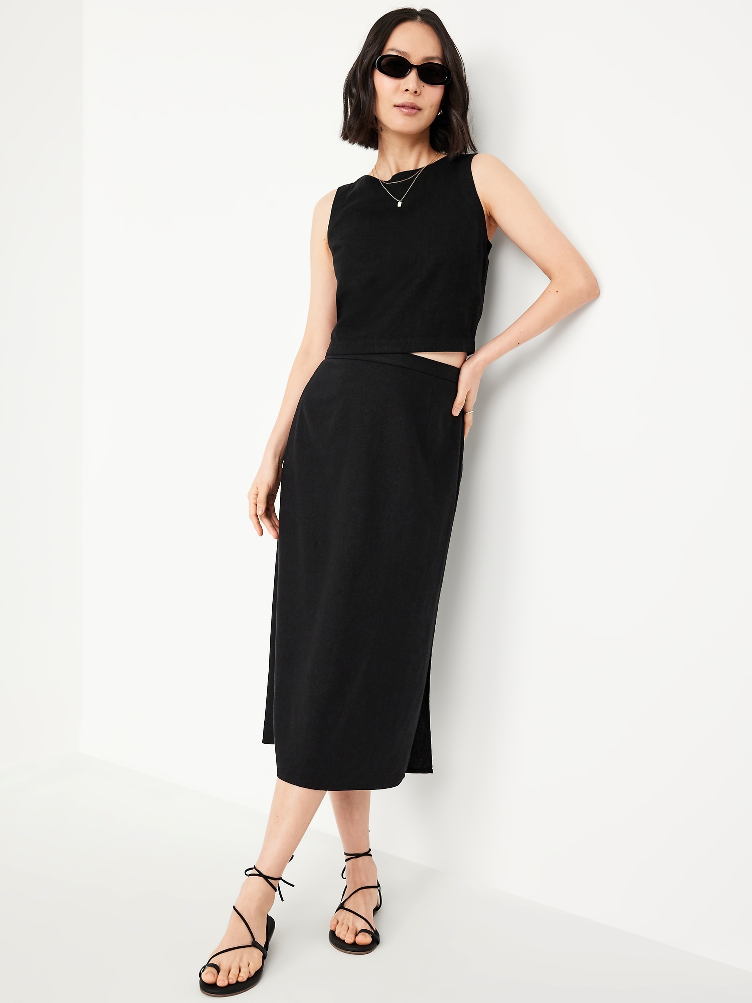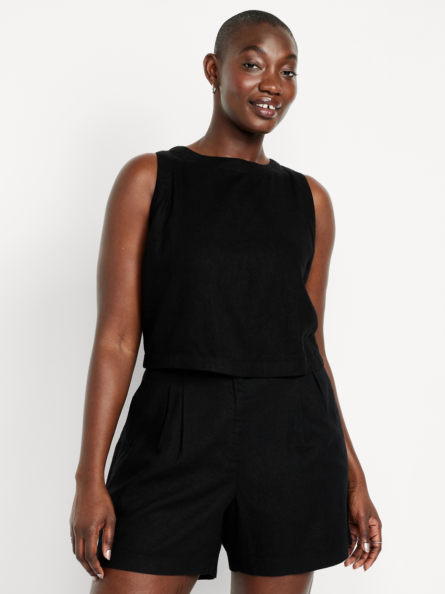 High-Neck Button-Back Top: high neck, sleeveless, button back, #756729
