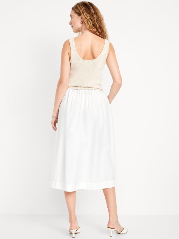 High-Waisted A-Line Midi Skirt: high elasticized waistband, side-seam pockets, striped print, #766934