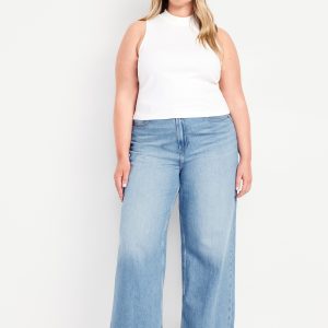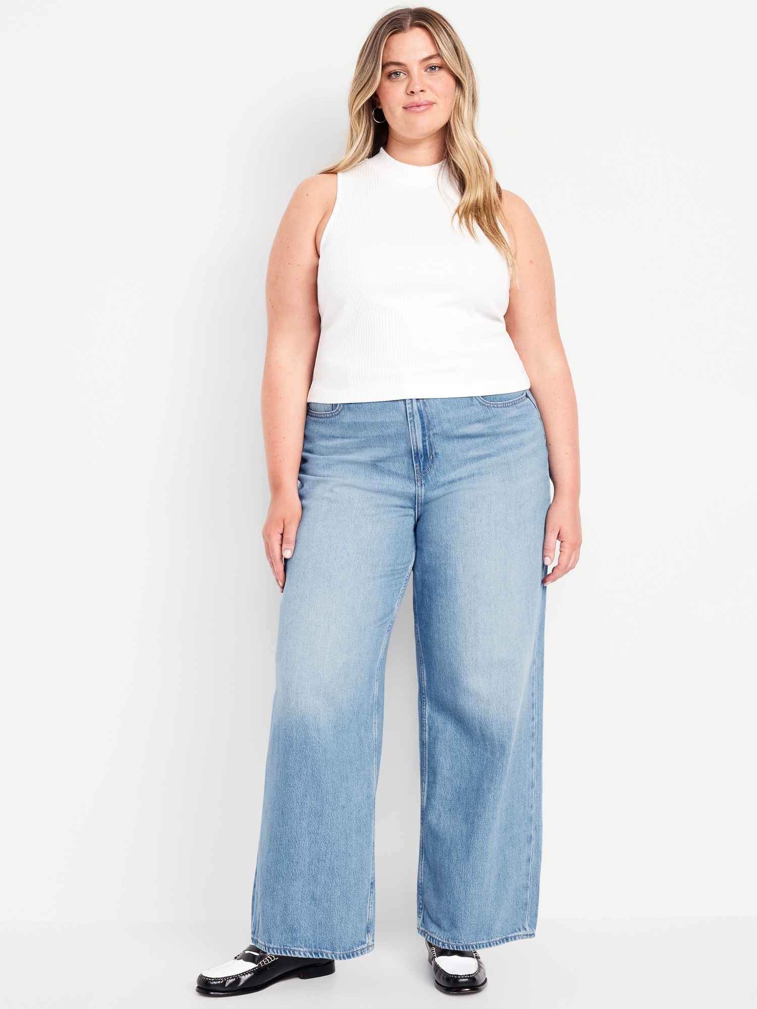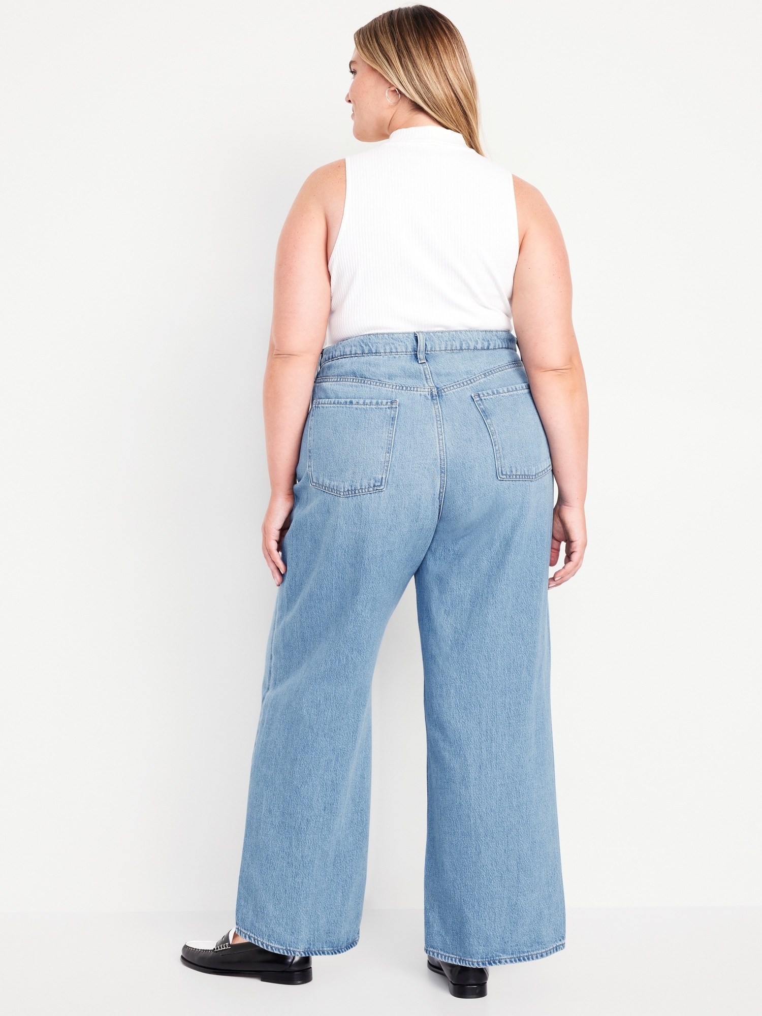 High-Waisted Baggy Wide-Leg Jeans: The oversized wide-leg jean of your teenage dreams.studded accent at sides, high waist, zip fly, #800683