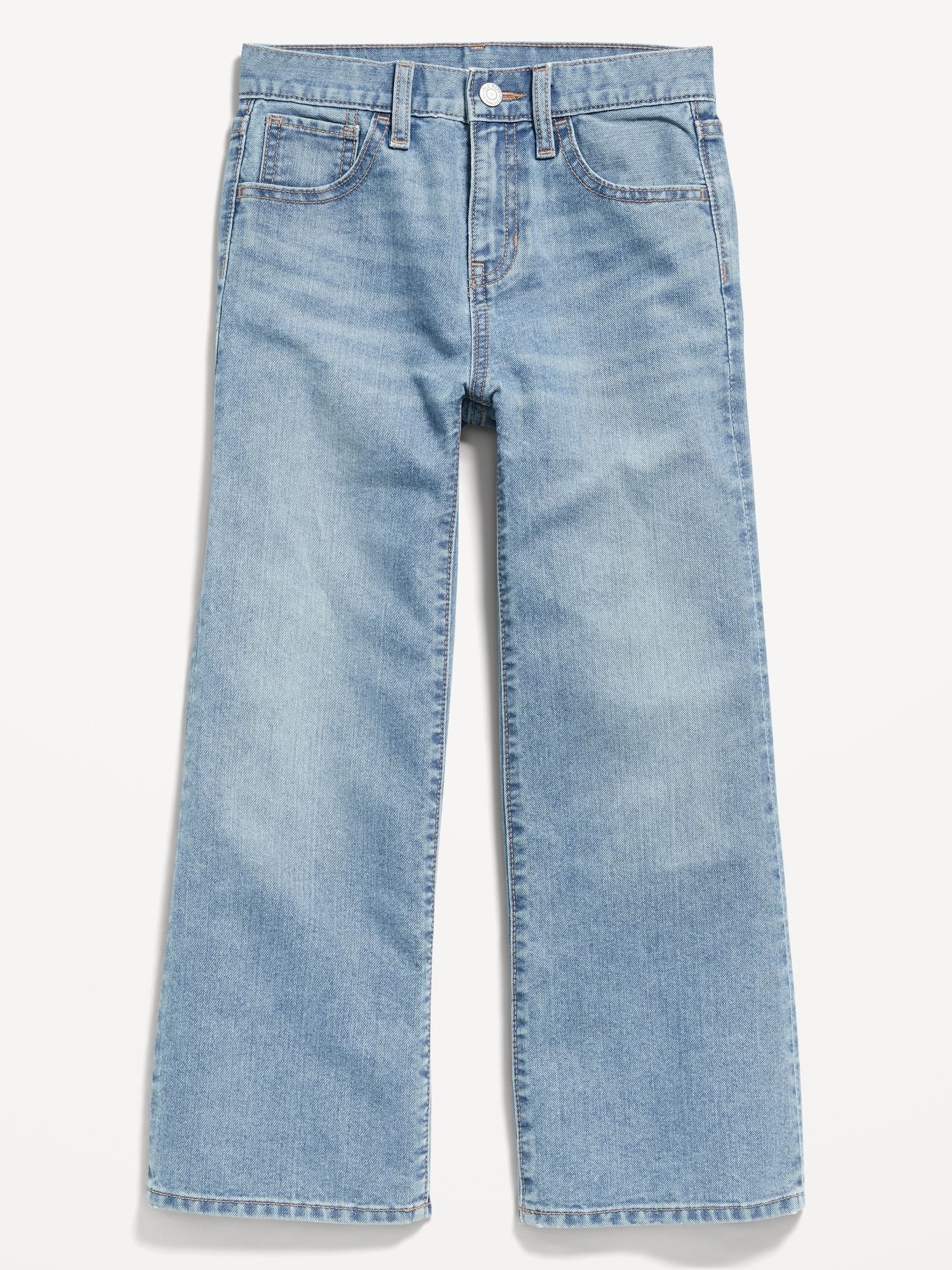 High-Waisted Baggy Wide-Leg Jeans for Girls: The it fits she really, really wants.interior adjustable waistband, snap button closure (sizes 5-8), regular button closure (sizes 10-20), zip fly, scoop pockets and coin pocket, patch pockets at back, wide leg opening, #803677
