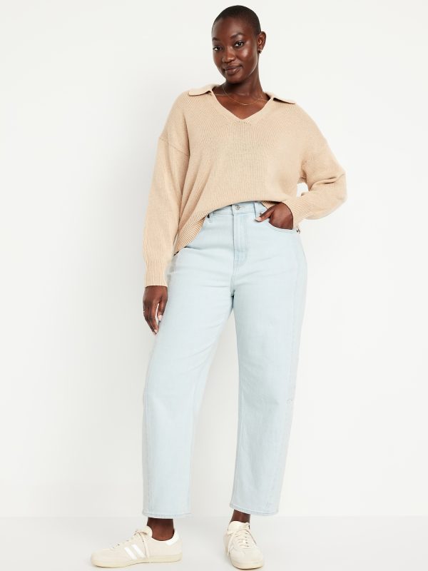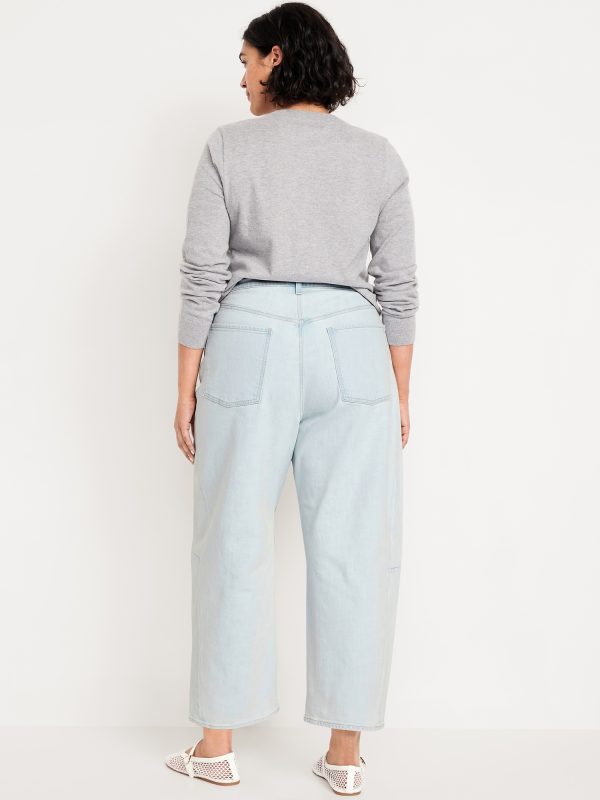 High-Waisted Barrel Ankle Jeans: A curved, tapered leg and proportion play from hip to hem.high waisted, zip fly, seamed barrel leg, #804566