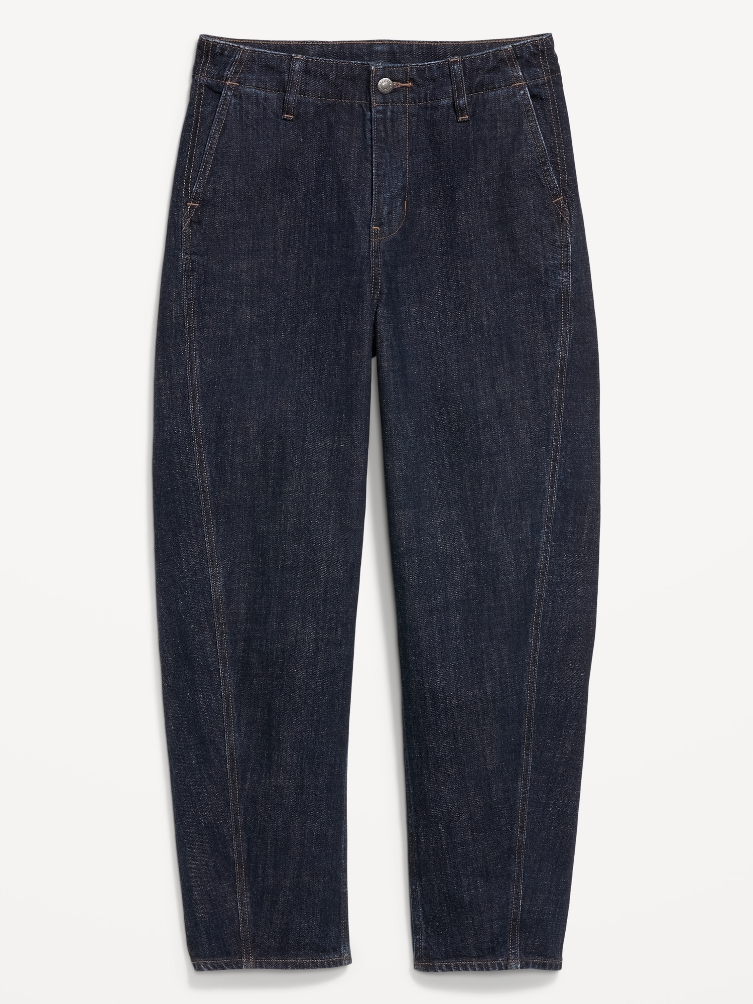 High-Waisted Barrel Ankle Jeans: A curved, tapered leg and proportion play from hip to hem.high waisted, zip fly, seamed barrel leg, #804566