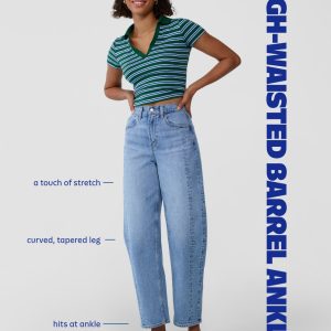 High-Waisted Barrel Ankle Jeans: A curved, tapered leg and proportion play from hip to hem.high waisted, zip fly, seamed barrel leg, #804566