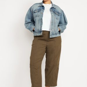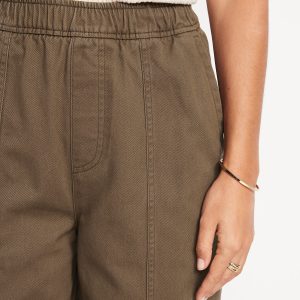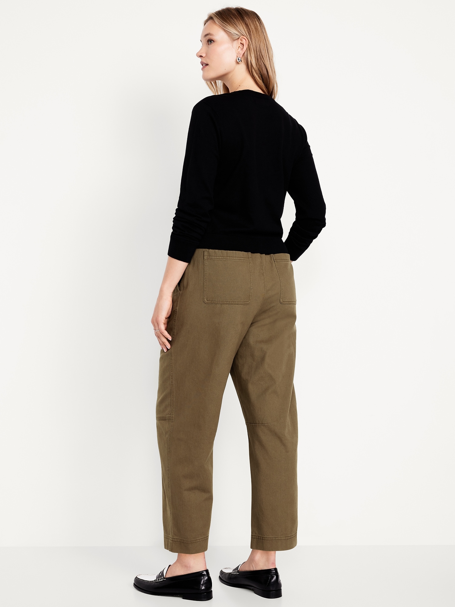 High-Waisted Barrel Ankle Pants: The effortless curved shape that’s so hot right now.comfort-elastic pull-on waistband, diagonal front pockets, back patch pockets, darted knee, seamed leg, #801608
