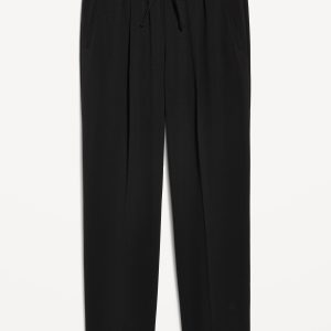 High-Waisted Billie Straight Ankle Trouser: A pleated pull-on pant for work and play.comfort elastic-drawstring waist, hip pockets, back right welt pocket, #799291