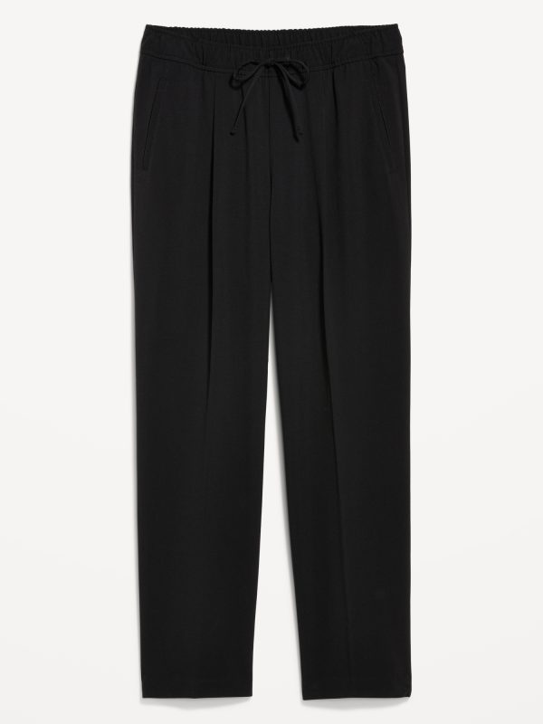 High-Waisted Billie Straight Ankle Trouser: A pleated pull-on pant for work and play.comfort elastic-drawstring waist, hip pockets, back right welt pocket, #799291
