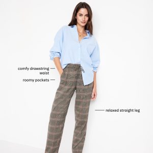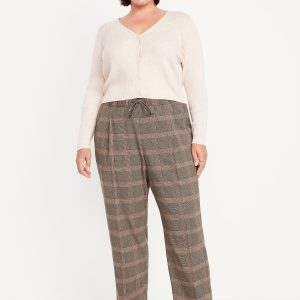 High-Waisted Billie Straight Plaid Ankle Trouser: A pleated pull-on pant for work and play.comfort elastic-drawstring waist, hip pockets, back right welt pocket, #799291