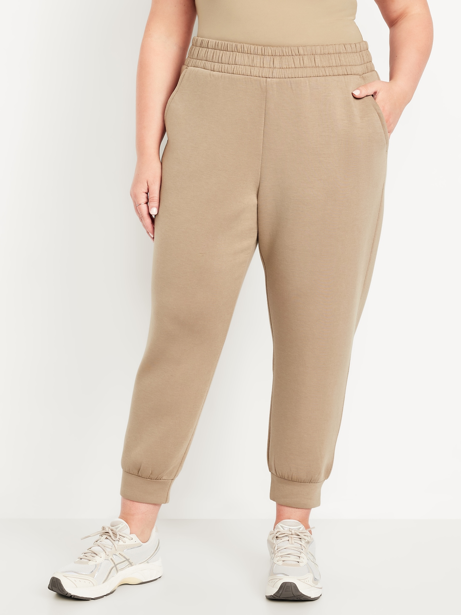 High-Waisted Bounce Fleece Jogger Sweatpants: Featuring Bounce Fleece. A smooth, cooling finish that feels good and looks chic everywhere you go.elasticized waistband, diagonal hip pockets, breathable, pull-on style, #766362