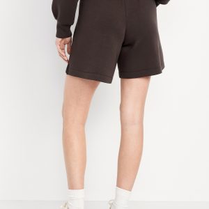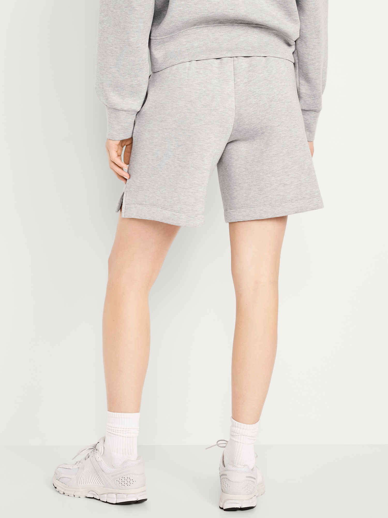 High-Waisted Bounce Fleece Shorts — 8-inch inseam: Featuring Bounce Fleece. A smooth, cooling finish that feels good and looks chic everywhere you go.elastic waistband, breathable, pull-on style, #764339