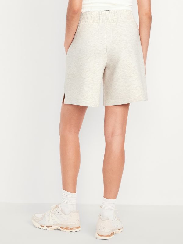 High-Waisted Bounce Fleece Shorts — 8-inch inseam: Featuring Bounce Fleece. A smooth, cooling finish that feels good and looks chic everywhere you go.elastic waistband, breathable, pull-on style, #764339