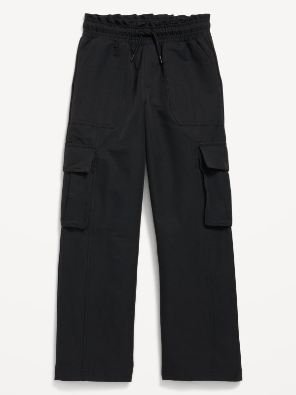 High-Waisted Cargo Wide-Leg Performance Pants for Girls: high rise, elasticized ruffled waistband, functional drawstring, diagonal on-seam pocket, flap cargo pockets, wide leg, #802737