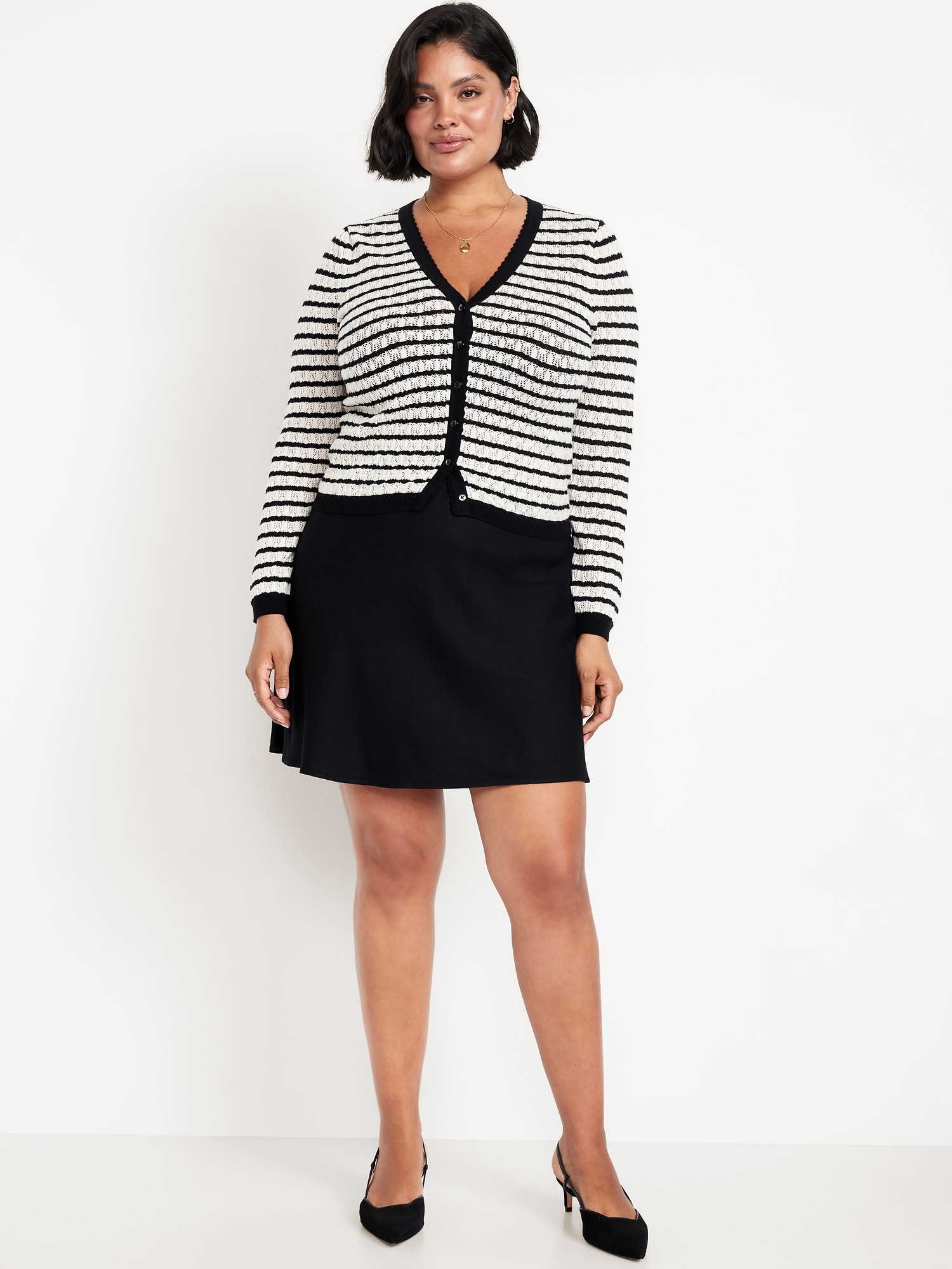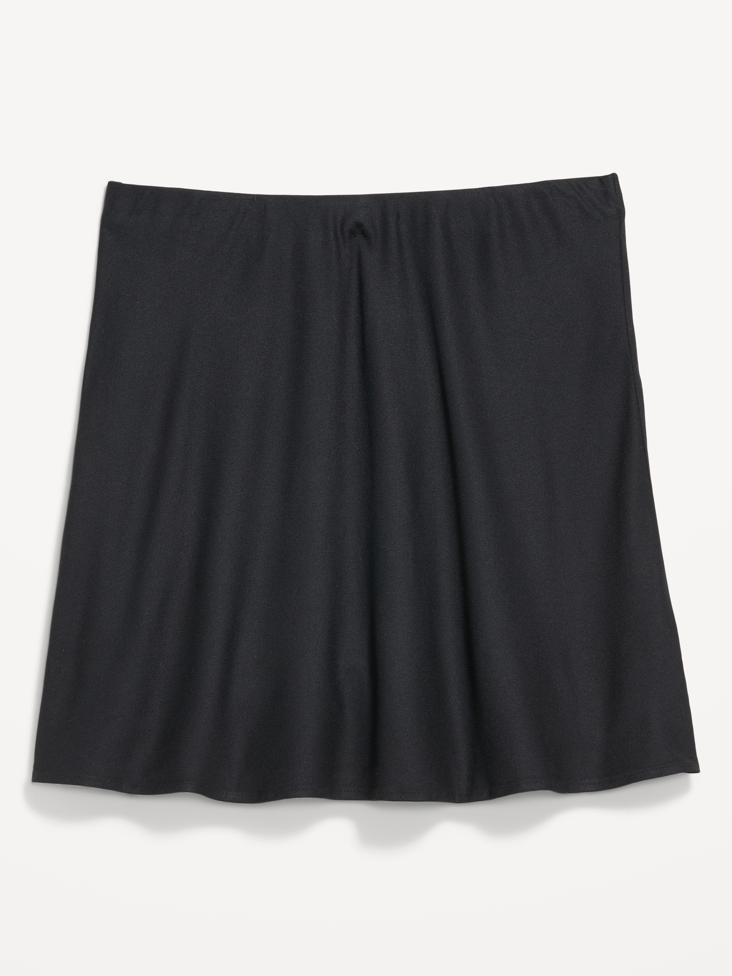 High-Waisted Crepe Flounce Mini Skirt: pull-on elastic waistband, darted back, #804480