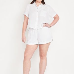 High-Waisted Crinkle Gauze Shorts — 4-inch inseam