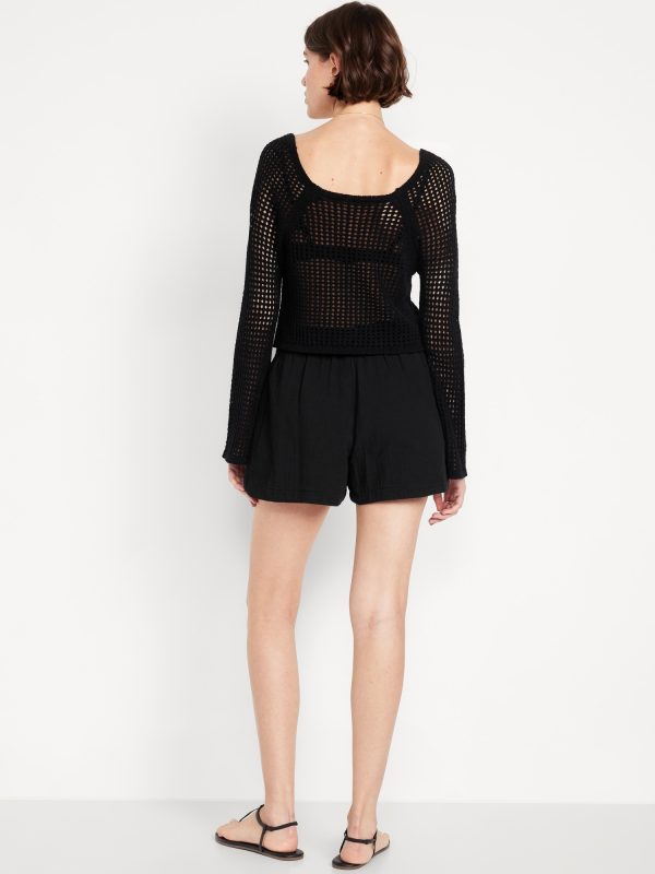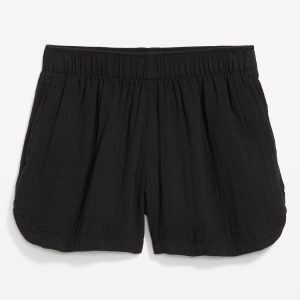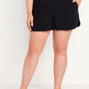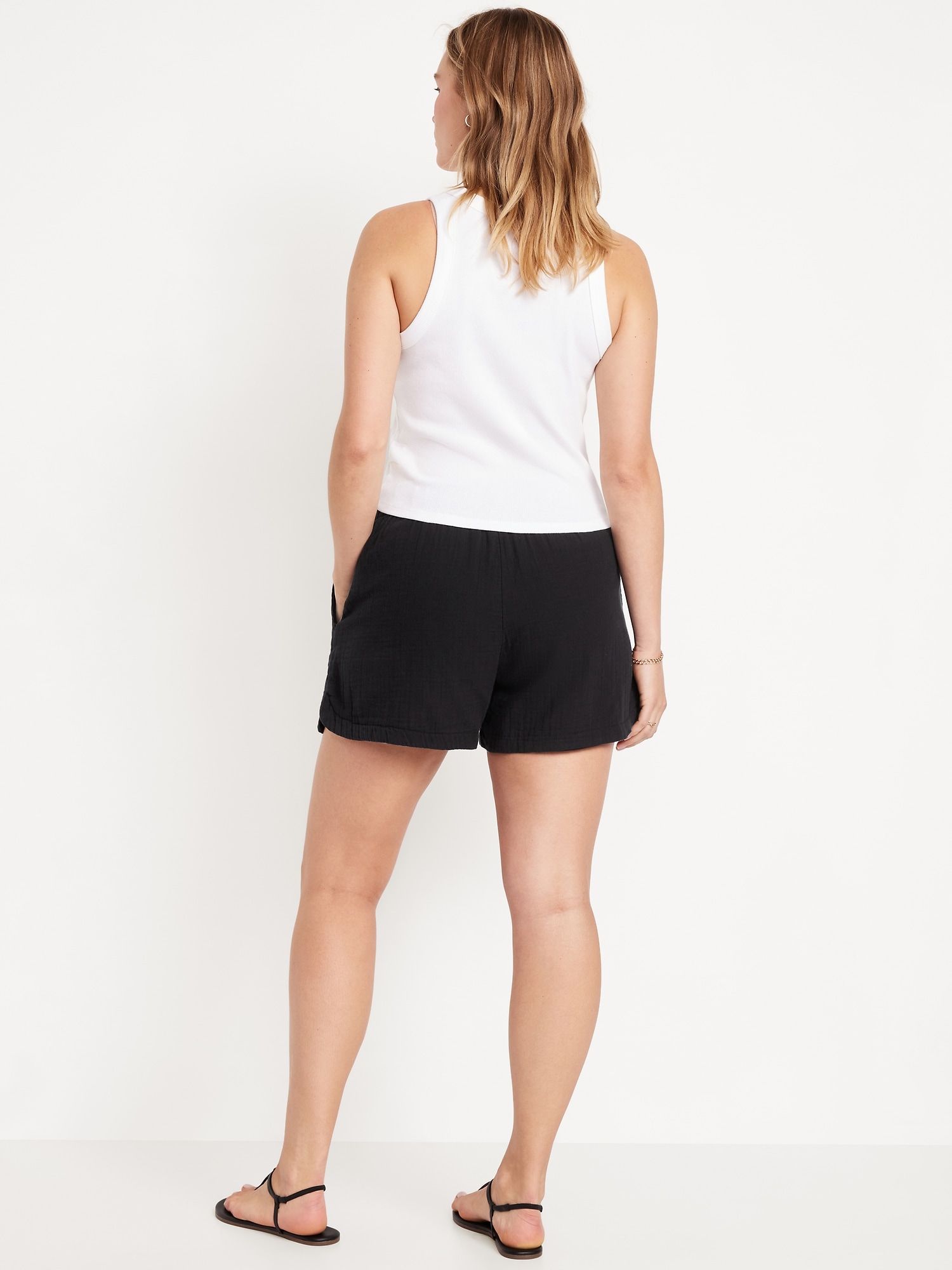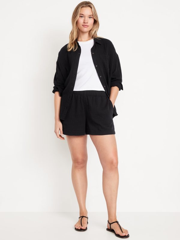 High-Waisted Crinkle Gauze Shorts — 4-inch inseam