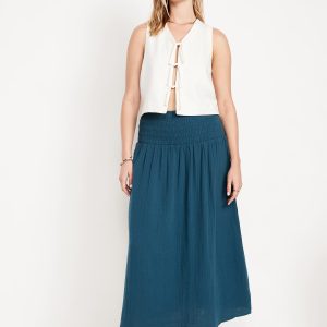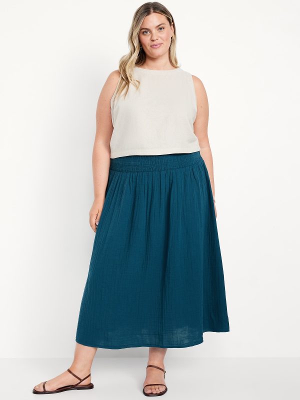 High-Waisted Crinkle Gauze Smocked Maxi Skirt: smocked high waistband, shirred detail, easy pull-on style, #766931