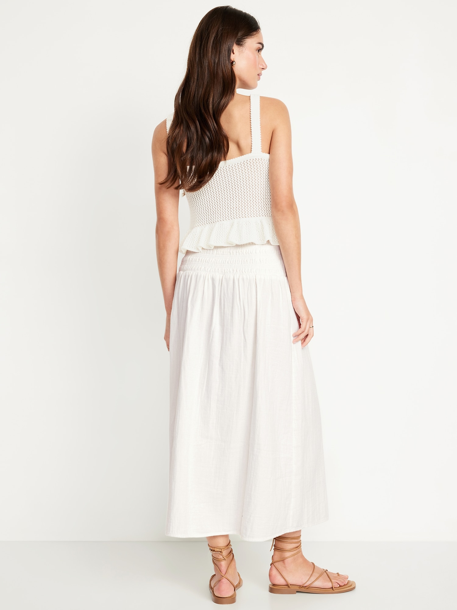 High-Waisted Crinkle Gauze Smocked Maxi Skirt